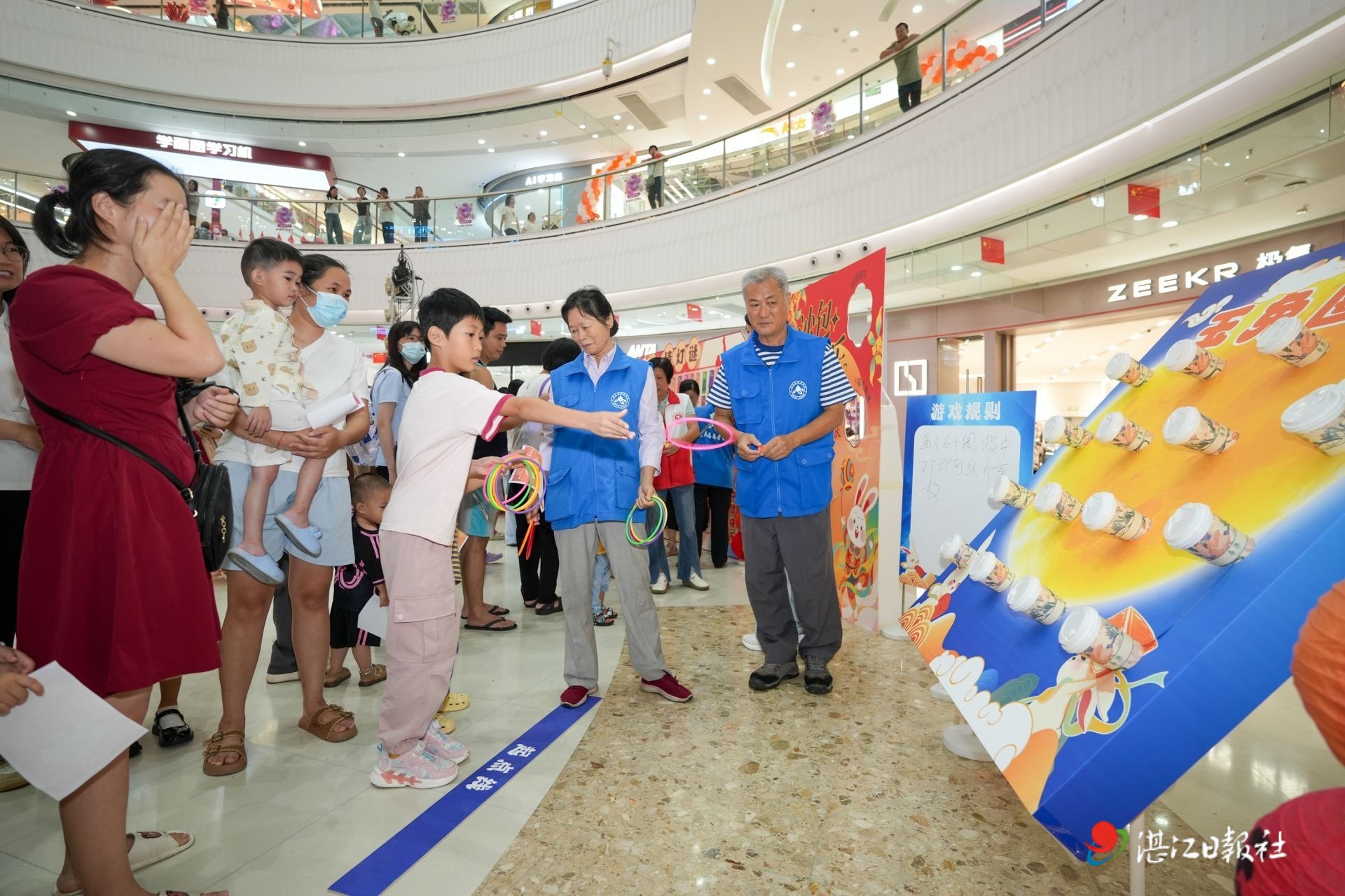 在文明实践区,“红色记忆排序挑战”让市民在照片拼接中重温祖国发展重要时刻;“消费维权挑战棋”以棋盘游戏普及消费避险知识。志愿者们积极派发《湛江市文明行为促进条例》,倡导文明新风尚。