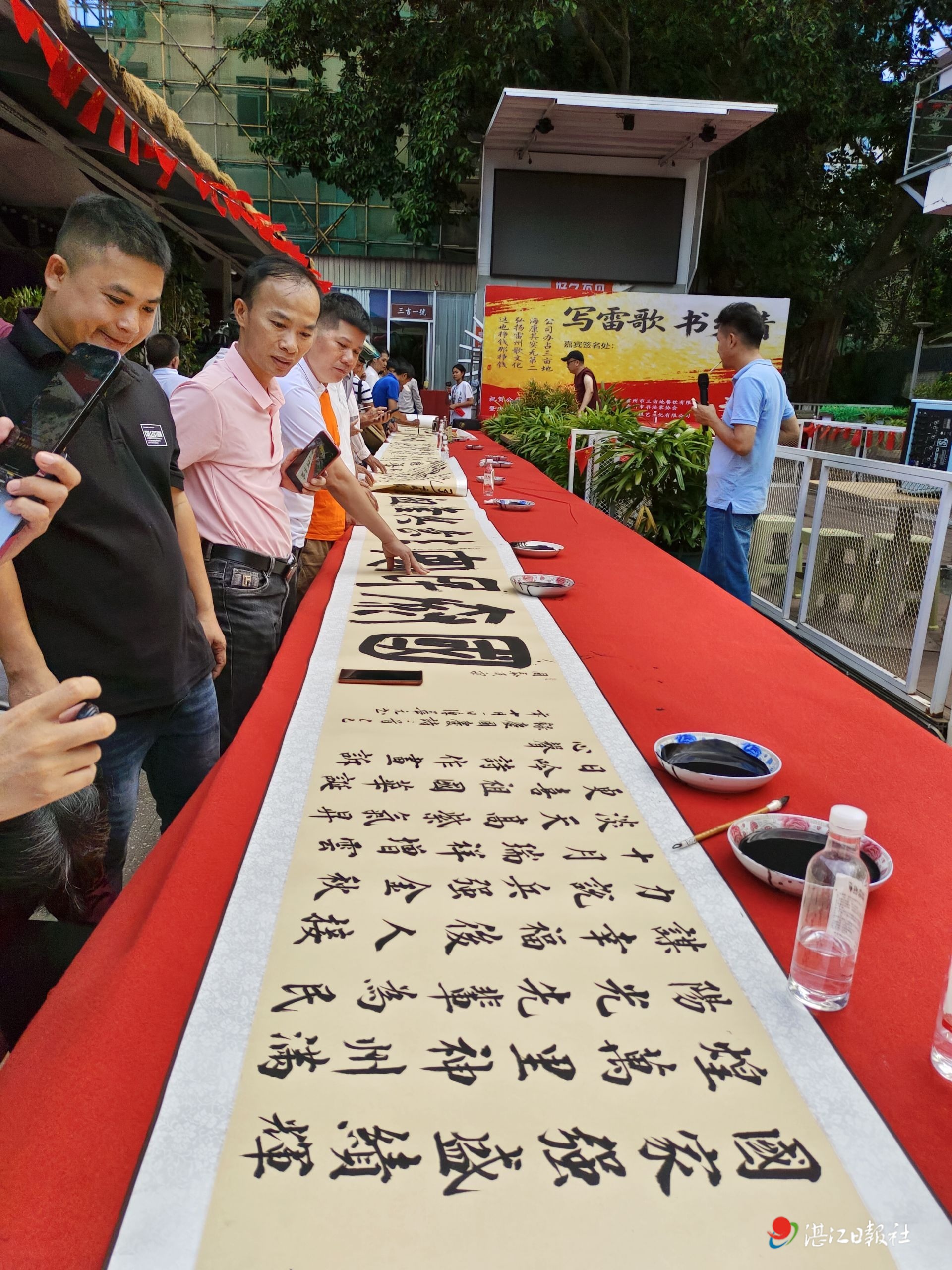 10月2日,雷州市书法家协会与三亩地美食联合举办以翰墨寄情、庆祝新中国成立76周年的主题活动在雷州举行,吸引了五十余位当地书法名家齐聚一堂,共同参与现场挥毫76米长卷的创作盛会。