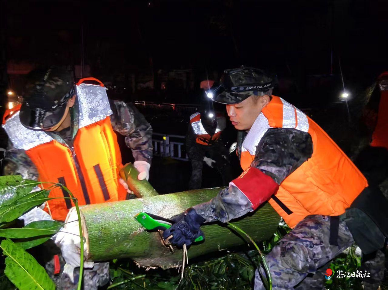 10月5日,今年第21号台风“麦德姆”给湛江带来严重风雨影响,引发粤西多地强降水。当晚台风过境后,武警湛江支队官兵连夜投入救援。