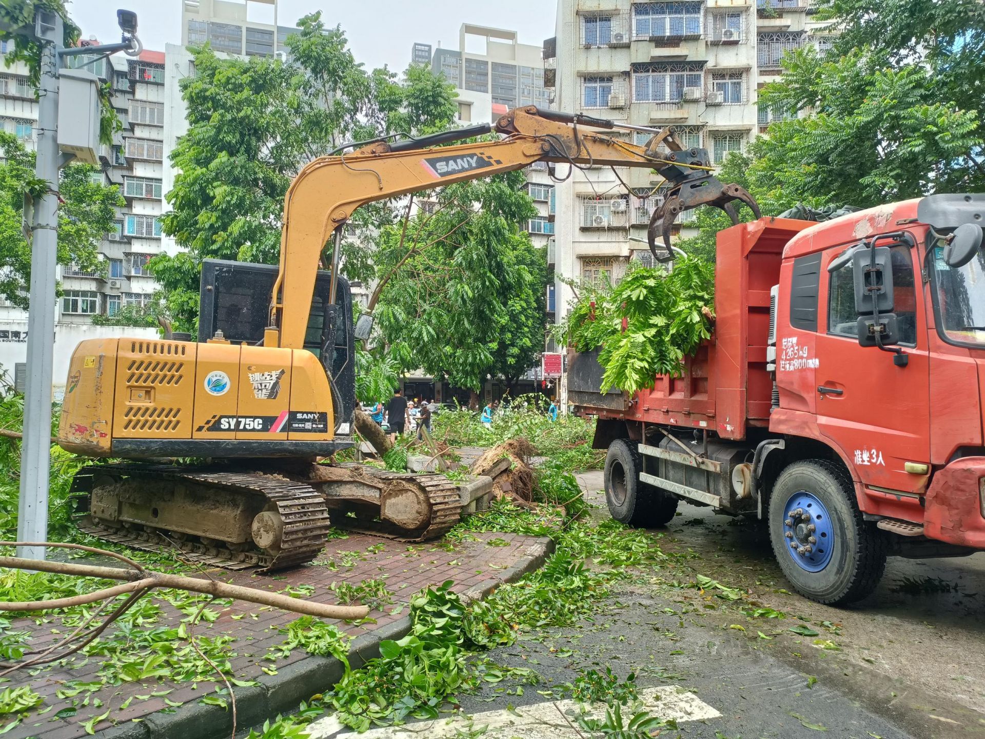据统计,海滨街道共组织150余名党员干部,组建8支党员先锋队,全面投入抗风救灾工作。截至10月6日中午12时,累计清理主次干道及小区内倒伏树木180余处、道路障碍60余处,疏通积水路段12处;投入清运车9辆、夹车2辆、铲车1辆,已成功清理倒伏树木60余棵、道路障碍20余处,有效恢复重点区域通行。