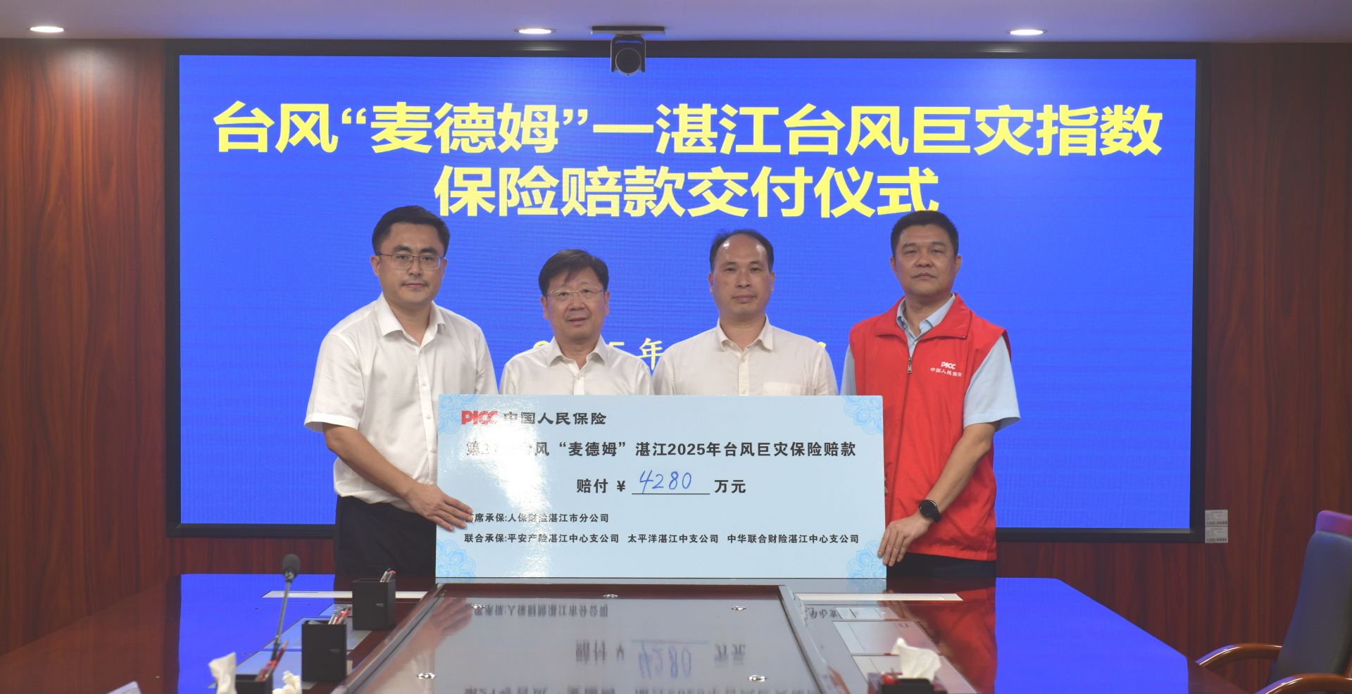 自我市实施巨灾指数保险制度以来,湛江市财政局积极组织我市各保险机构联合实施巨灾指数保险制度,并参与方案设计、产品创新及服务优化,充分发挥保险机制在风险管理、灾后救助等方面的积极作用。今年6月,市财政局代表市政府与人保财险湛江市分公司、平安产险广东分公司、太平洋财险湛江中心支公司、中华联合财险湛江中心支公司组成的共保体签订2025年台风巨灾指数保险,为我市构建多层次、可持续的巨灾风险保障体系,切实提升防灾减灾救灾和整体抗风险能力提供坚实的专业支持和实践支撑。