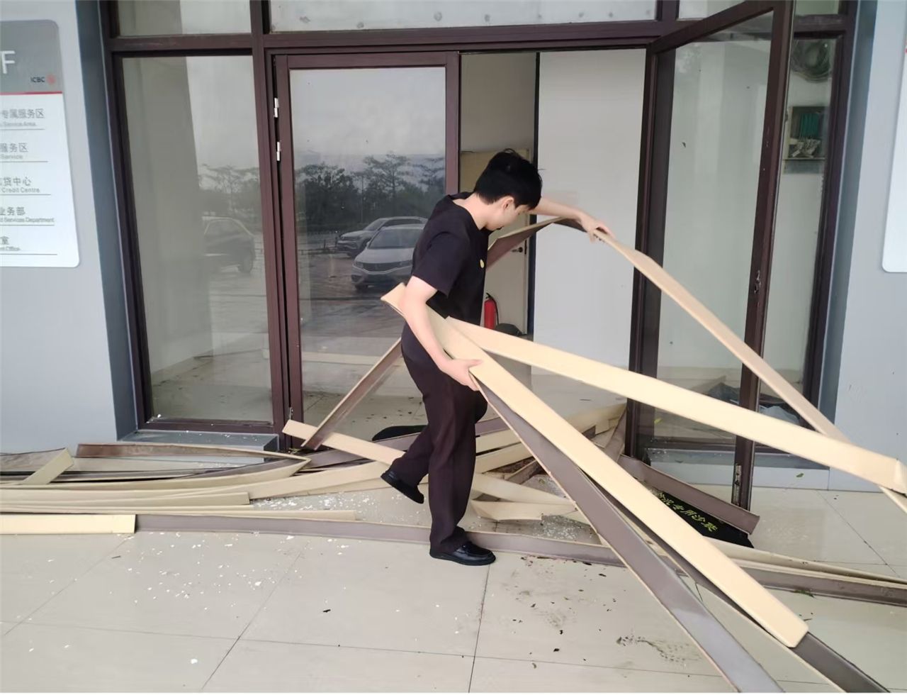 风雨减弱后,湛江工行迅速行动,第一时间组织员工投入灾后恢复工作,对网点门前的断枝、淤泥和积水进行全面清理。分行各部门高效协同,迅速开展受灾情况巡查与评估,全力为客户营造安全、整洁的服务环境。在积极做好内部复工工作的同时,湛江工行主动履行社会责任,组织员工积极参与湛江市直团组织台风“麦德姆”灾后重建工作,与全市力量一道投身于道路清障、社区援助等志愿服务中,展现了金融机构的社会担当。