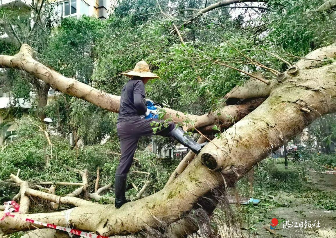 今日,赤坎区沙湾街道金沙湾社区多方联动,对辖区内的道路进行清理。