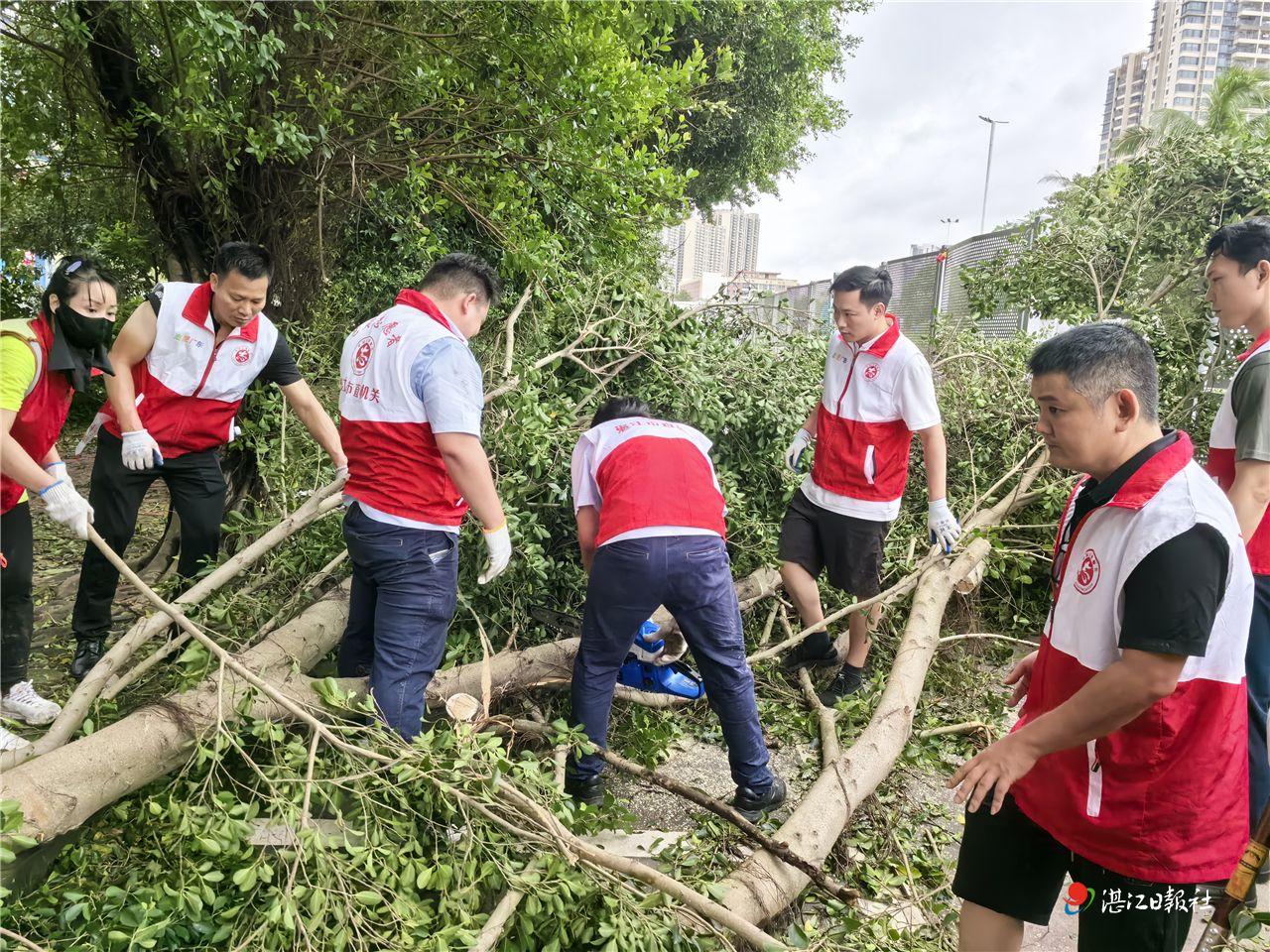 现场,由市直团工委组织的青年志愿服务队和社区工作人员一道,手持扫把、耙子、锯子、铁铲等工具,大家分工明确、细化任务,对金沙湾社区相关区域进行清洁。志愿者有序清理倒伏树木、断枝,并对落叶、排水道淤泥、低洼积水等进行彻底清理。大家不怕脏、不怕苦、不怕累,充分发挥“奉献、友爱、互助、进步”的志愿服务精神。