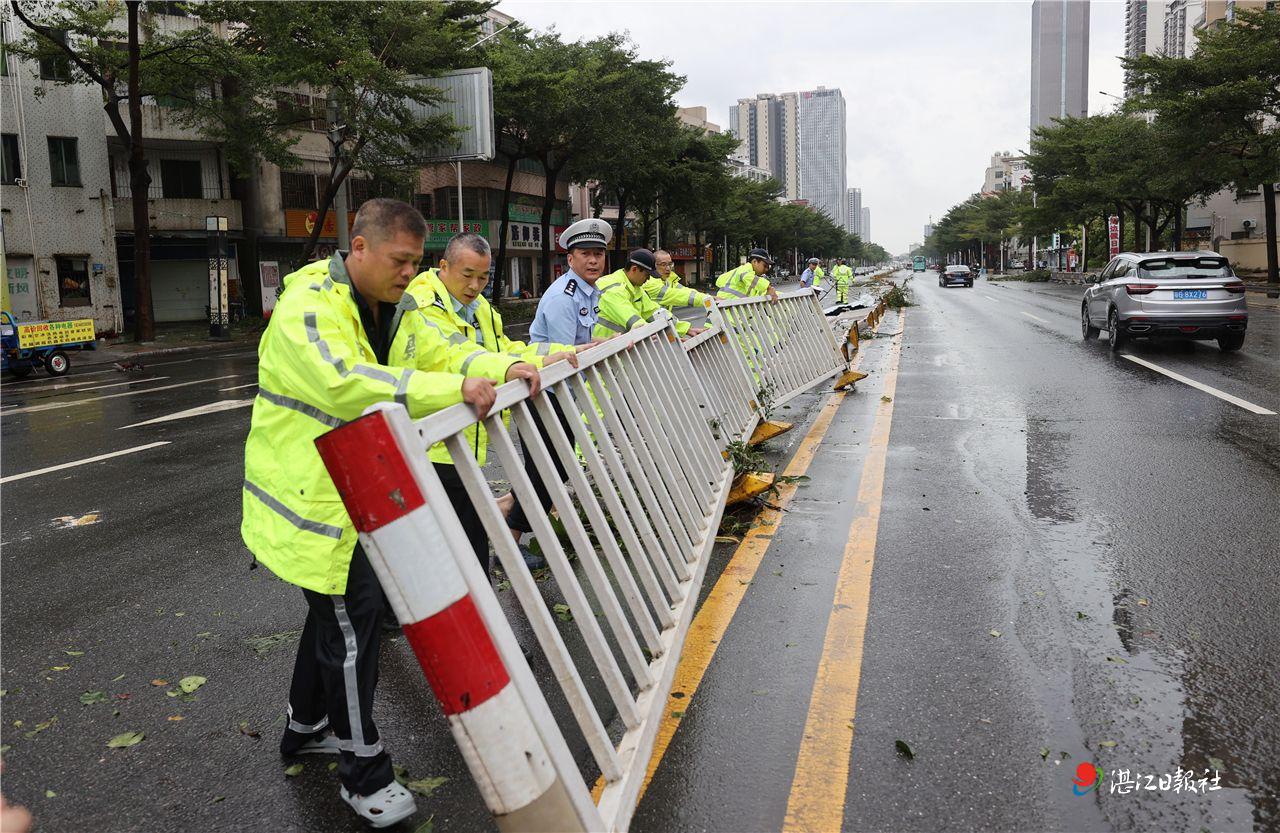 10月5日晚8时许,台风风力虽逐步减弱,但赤坎区仍风雨交织,辖区内道路受阻、设施受损。赤坎公安分局主动扛起责任,迅速组织第一梯队150余名警力,连夜投入灾后重建工作。民辅警们不顾风雨侵袭,手持工具清理道路障碍、抢修受损交通设施、疏导滞留车辆,在夜色中筑起一道“平安防线”。经过一夜鏖战,截至10月6日早上,赤坎区主干道通行秩序全面恢复,为市民中秋出行筑牢坚实保障。当天7时许,分局警力接续作战,启动第二梯队警力分赴辖区灾情较重点位,开展第二轮清障恢复工作。至中午12时许,赤坎区内路面交通秩序基本恢复正常,断裂树枝等障碍物已基本清理完毕。