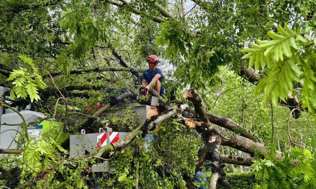 随处可见的残枝断叶严重影响车辆通行,参加清障的队员们不怕脏不嫌累,携带油锯、砍刀、绳索等专业工具赶赴现场作业。针对倒伏树木、断枝进行清理、切割和转移,优先清出主干道,恢复通行,同步排查路面坑洼隐患,设置警戒区域,保障交通运输秩序与群众出行安全。截至目前,队伍累计出动110人次,累计清理障碍点148处。