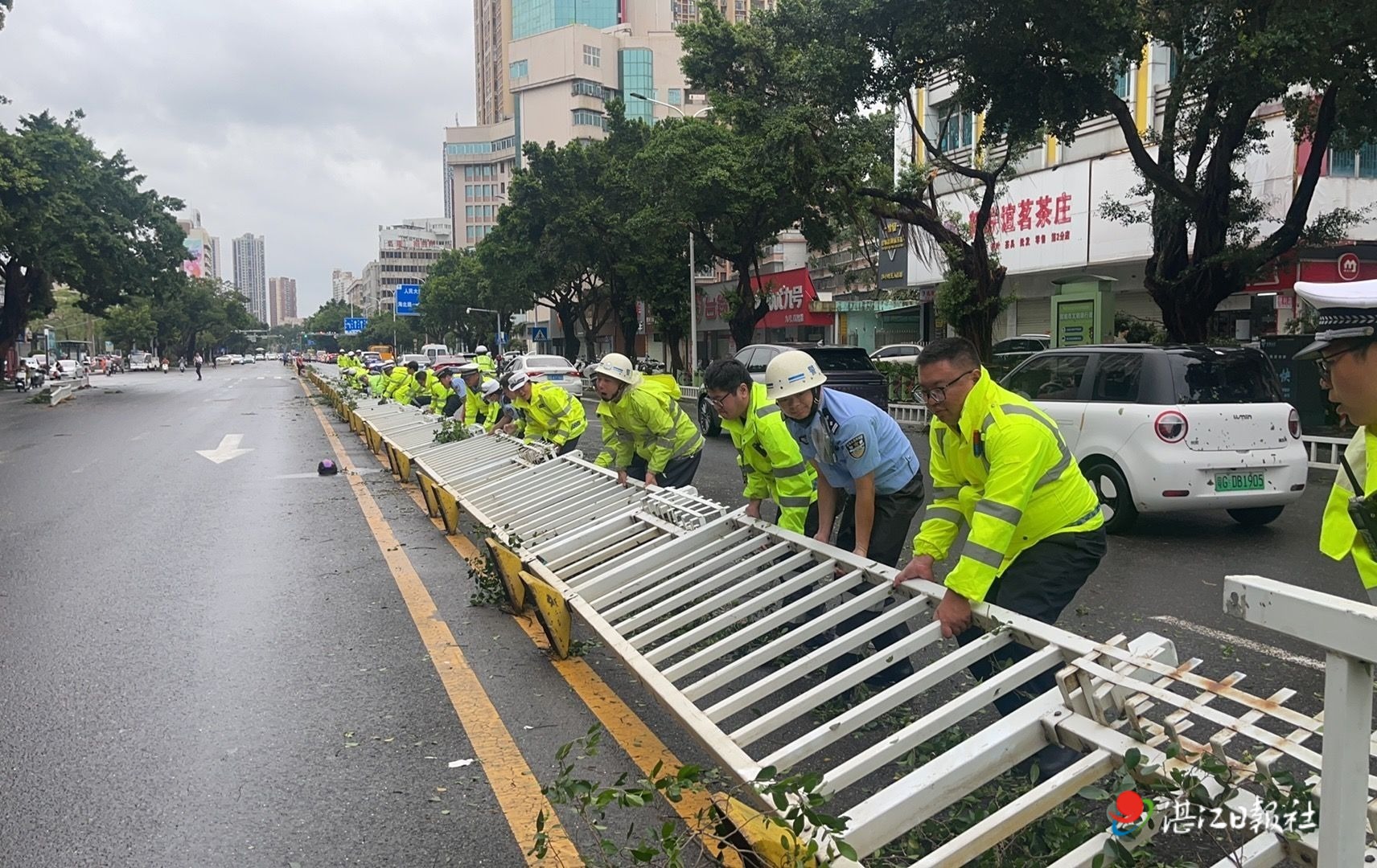 台风过境期间,湛江公安启动市、县、派出所三级指挥机制,增设14个接警席位,妥善处置群众涉台风求助警情450多起。自琼州海峡北岸停航以来,交警部门加强秩序管控,全力疏导服务400余辆候渡车辆、450余名滞留人员,逐一落实人车分离措施,确保安全有序。公安机关及时封闭管控辖区7条高速公路、市区4座跨海大桥,排查管控易积水点、涵洞及易涝地下停车场,有力确保路面秩序。投入维护治安秩序巡防警力4000余人次,重点巡防1200余个临时避险安置点,累计服务群众6000余人次。