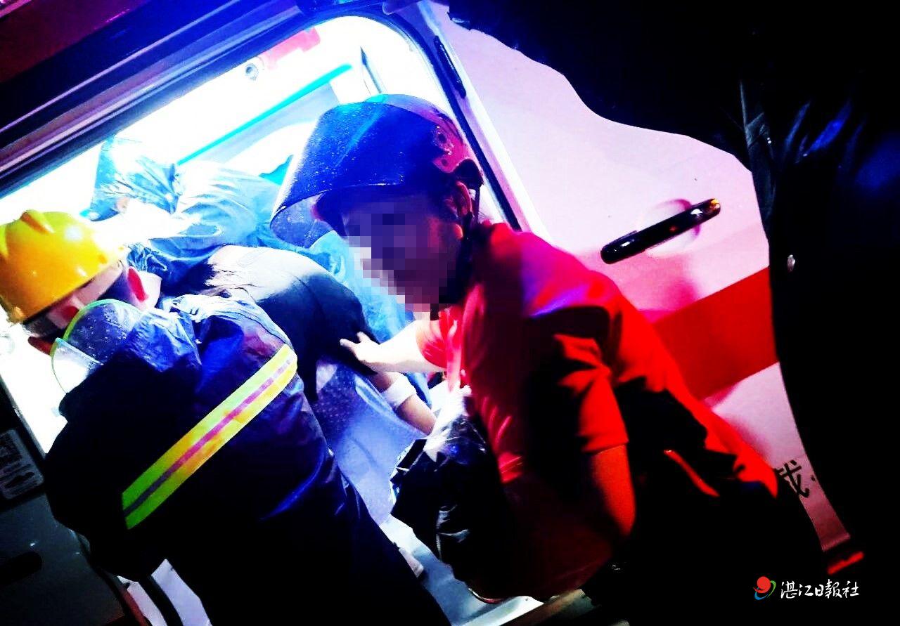 5日20时50分,经开区华都汇一名高血压患者突发头晕呕吐,情况紧急。湛江滨海医院救护车穿越狂风暴雨抵达现场,医护人员立即为患者监测生命体征并实施紧急处理,判断其需转入综合医院接受系统治疗。