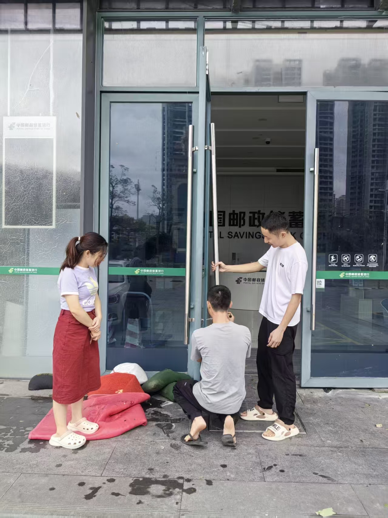 邮储银行湛江市分行员工现场摸排客户受灾情况。