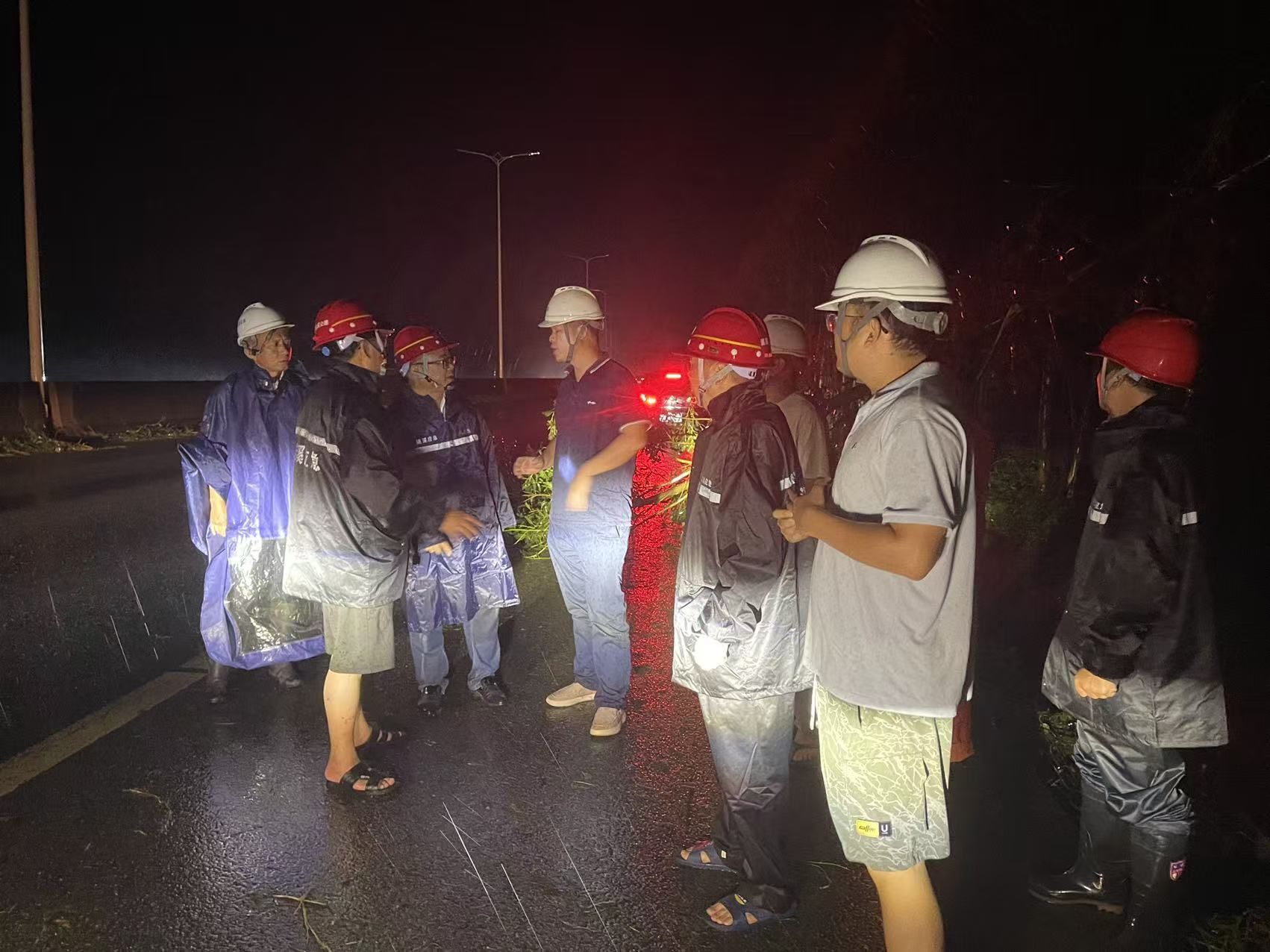 10月6日,项目休假的管理人员也加入了抢险工作中,在徐闻县各地点开展救援行动,配合徐闻县交通局进行主要干道抢通工作,现场管理人员顶着间歇性狂风,在泥泞中交替作业,于当晚24时顺利完成省道S547及S376部分路段32千米、徐闻县道约46千米的清障工作,以及徐闻大水桥水库坍塌围蔽工作,为返乡过节的游子打通了“生命通道”。