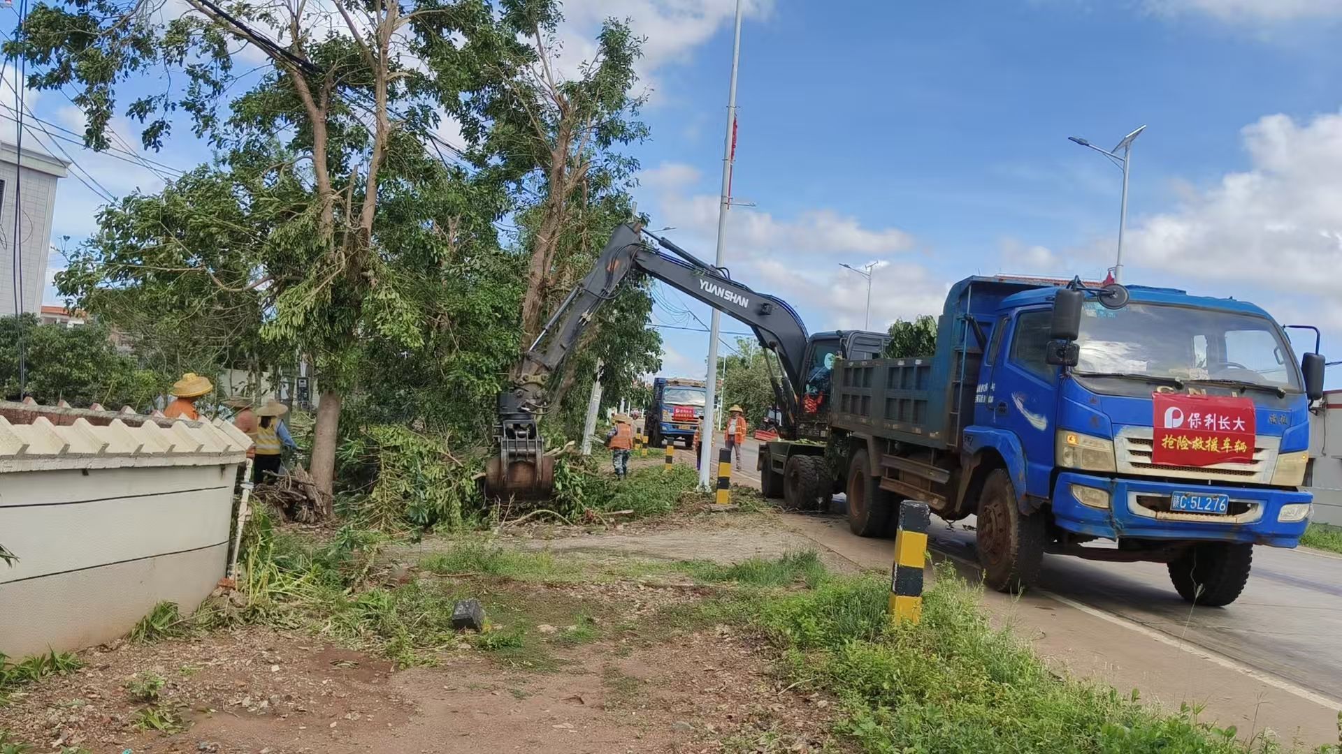 台风登陆点徐闻县灾情最为严峻,主干道上倒伏的树干纵横交错,部分路段积水较深。面对救援环境复杂、清理工作举步维艰等挑战,项目投入10余台清障设备及运输车,积极协同当地交通局开展工作。经过抢险人员持续6小时不懈的努力,至凌晨3时30分,徐闻至雷州段20千米主干道恢复通行,为返乡过节的游子们提供了便利。