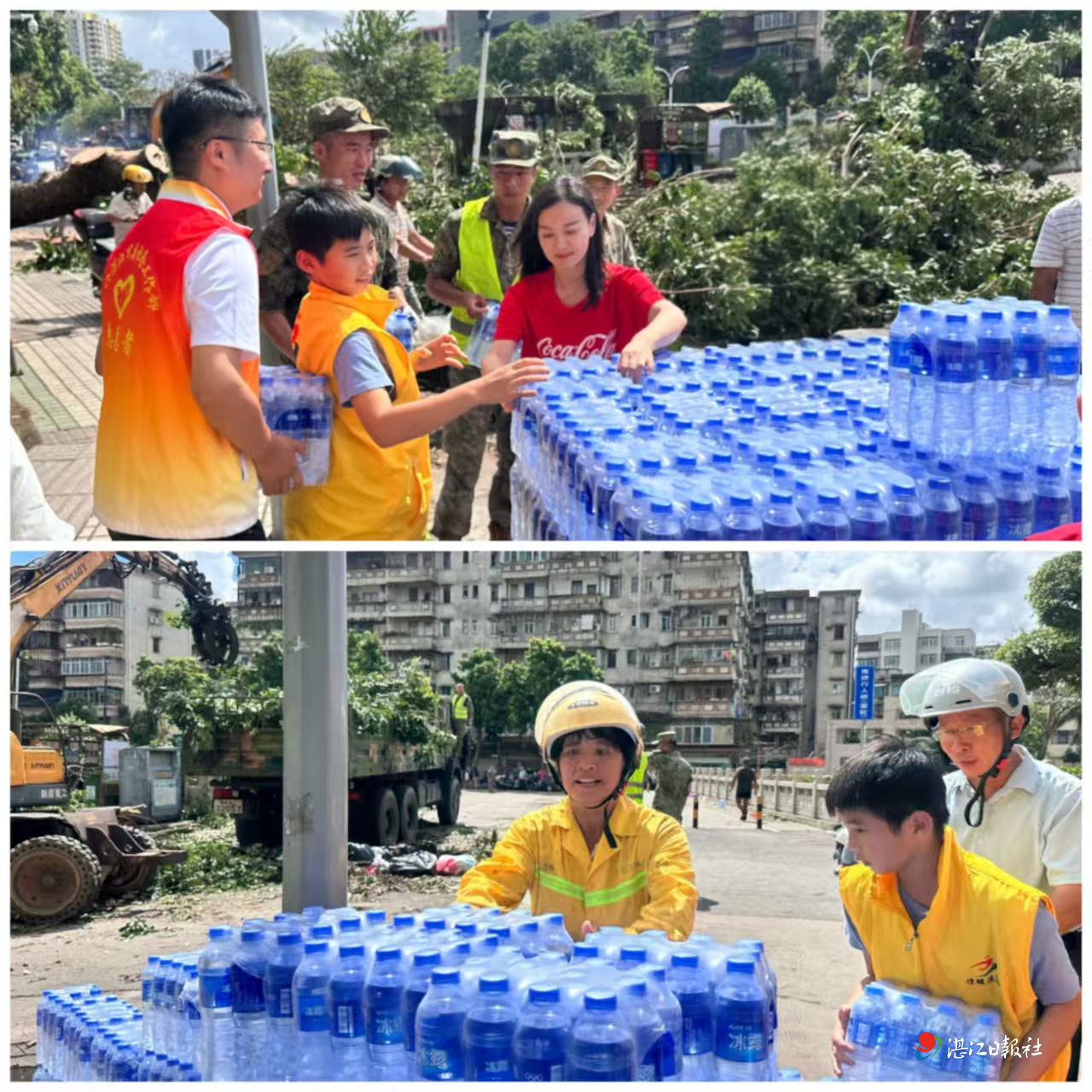 市委社会工作部与团市委主动担当引领职责,统筹市青联、市志愿服务联合会等12支队伍共80余名志愿者,开展路面专项清障,快速清除路障杂物,保障主次干道通行。情暖湛江志愿者协会高效对接壹基金联合可口可乐“净水24小时”项目,捐赠12100箱生命水驰援一线,目前首批1000箱已送达市城管执法局、2000箱送达霞山区,后续9100箱将于10月8日定向送往霞山区、遂溪县、徐闻县,精准覆盖清障一线用水需求。