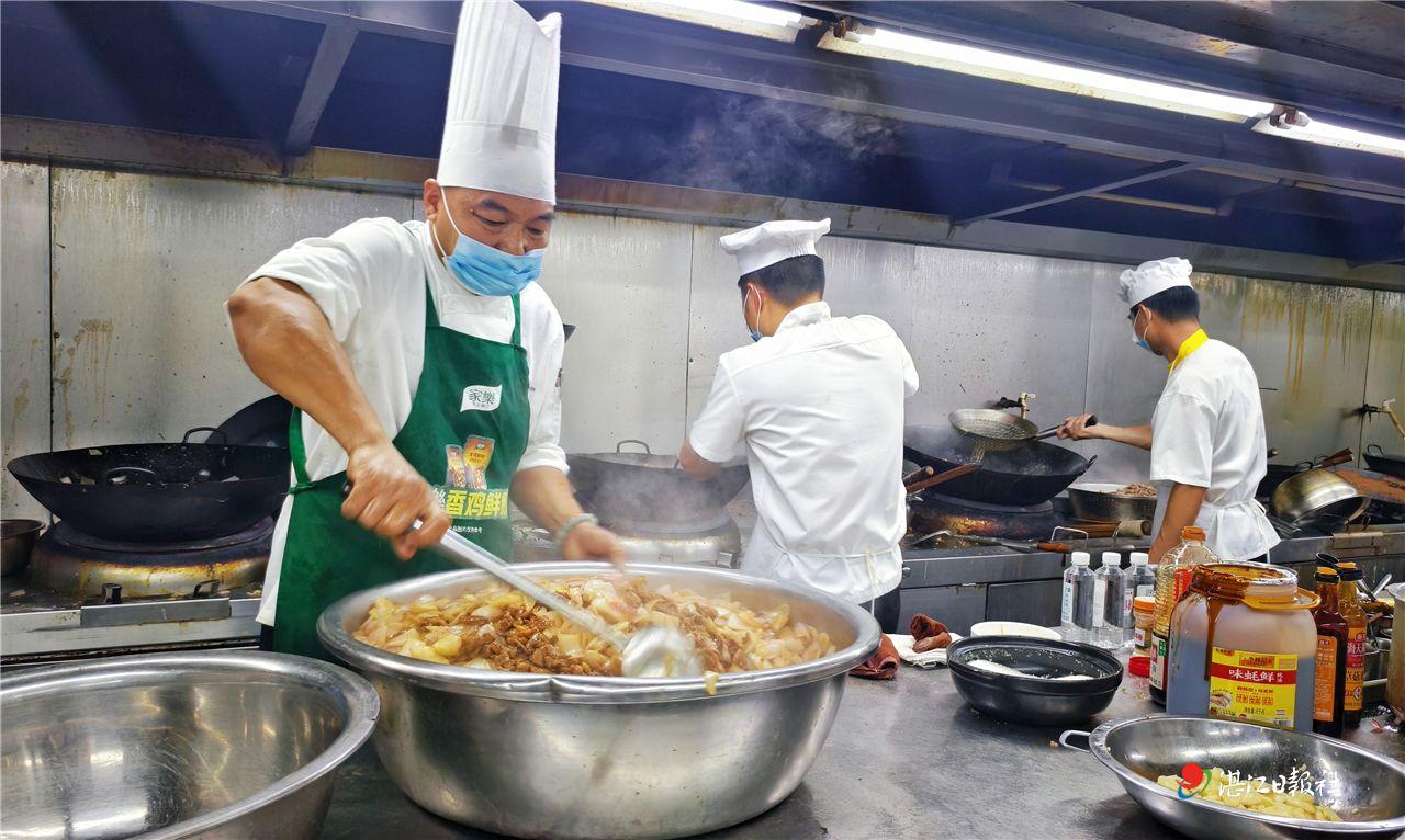 台风“麦德姆”过境后,救灾一线,城管、消防、部队官兵与志愿者日夜清障排险;而在后方厨房里,广东金岭集团金海酒店员工也与时间赛跑,只为让前方人员及时吃上热乎饭菜。