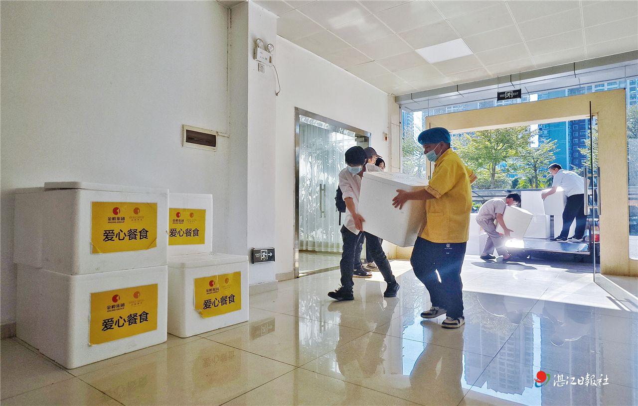 10月6日,在台风过境次日,金海酒店从相关部门了解到需要供餐的数量,从7日起启动免费供餐。首日送出1400份,次日增至1600份,并分批送达湛江市城市管理和综合执法局。