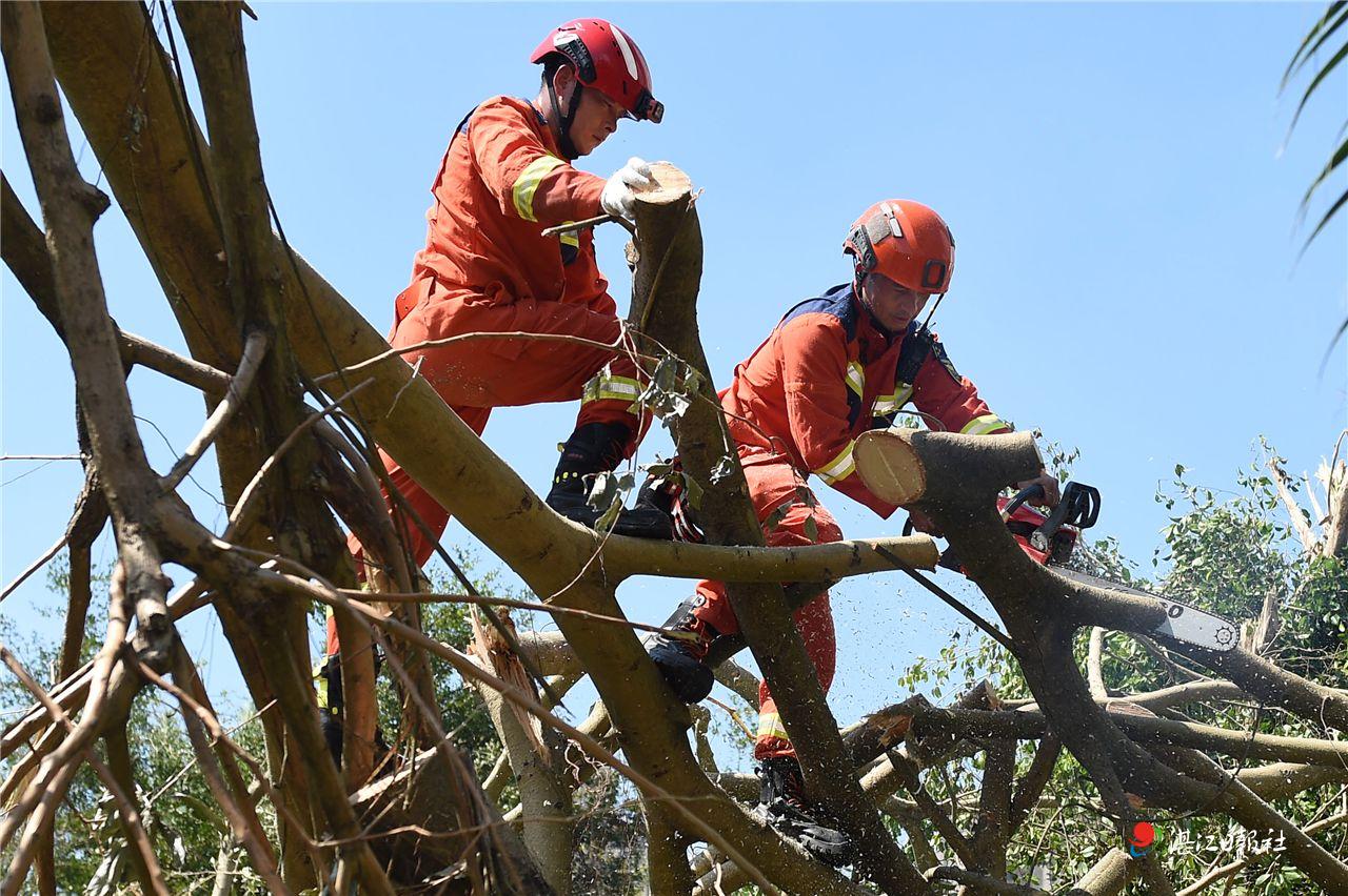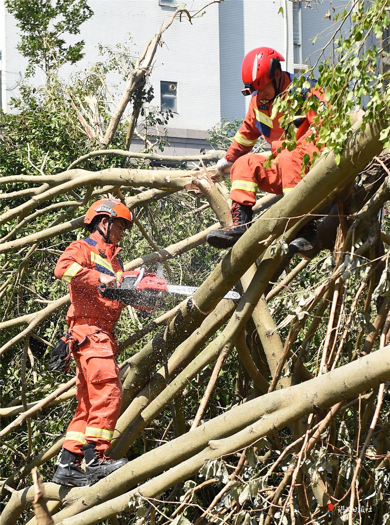 10月8日清晨,广东消防救援机动总队筹备组东莞驻防分队的消防员们已身着标志性的橙色救援服,奔赴海田路清障现场。在交错缠绕的残枝断木间,他们迅速投入战斗:手持专业切割工具的消防员稳稳固定锯片,随着“滋滋”的机械声响,锯片飞速旋转,断裂的树干被精准分割,消防员们默契配合。整个过程中,消防员们始终专注认真,不放过任何一处存在安全隐患的残树,以高效协作全力推进清障工作,只为尽快恢复环境整洁。据统计,该分队当日清理倒木90余棵,疏通道路约2.2公里,清理公园面积约40亩。