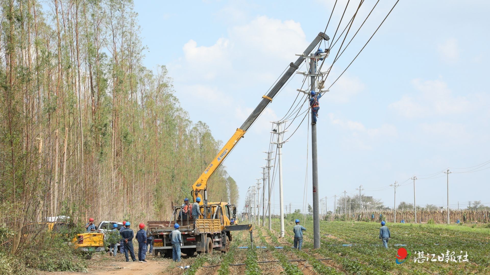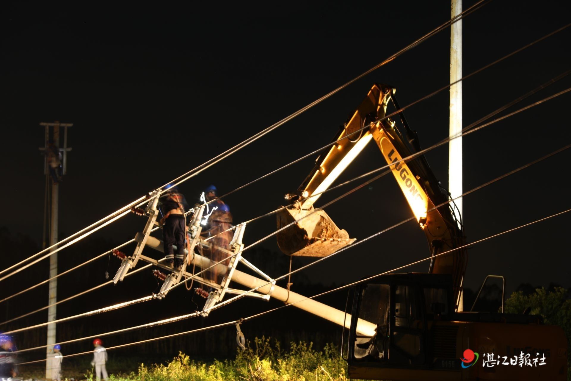 都匀供电局驰援队伍对遂溪县草潭镇10千伏醒潭线和10千伏醒洪线185号杆至194号杆断杆抢修工作。 通讯员王露 摄