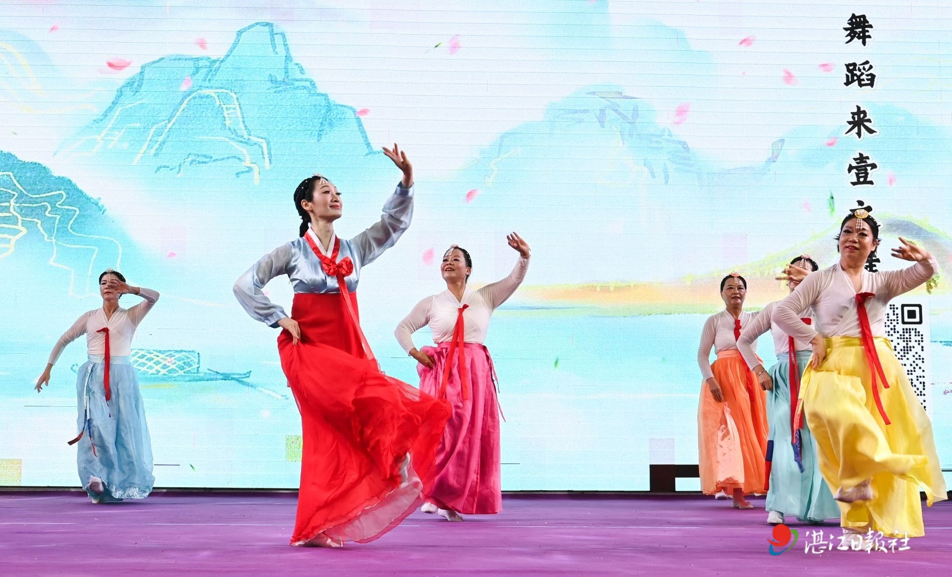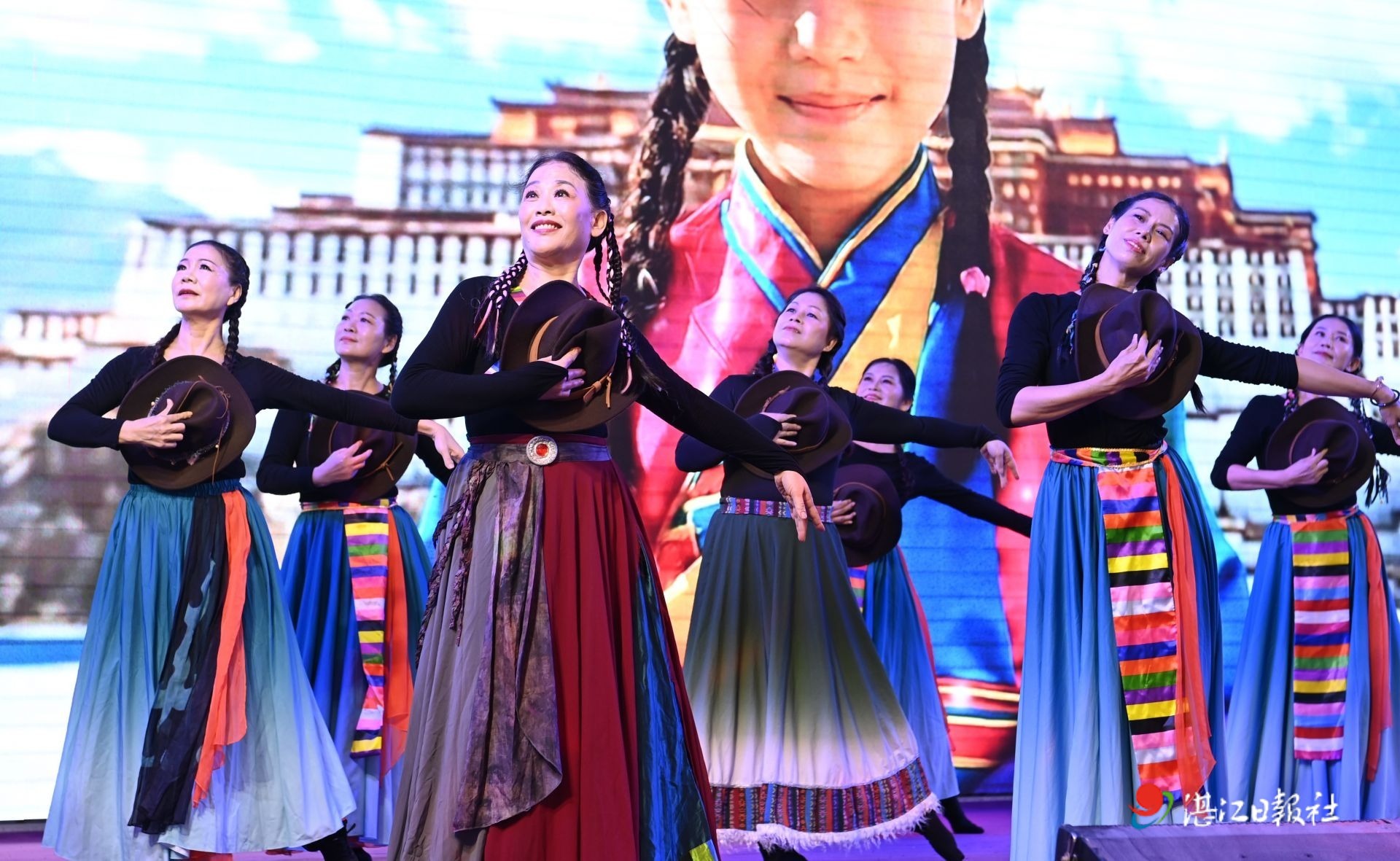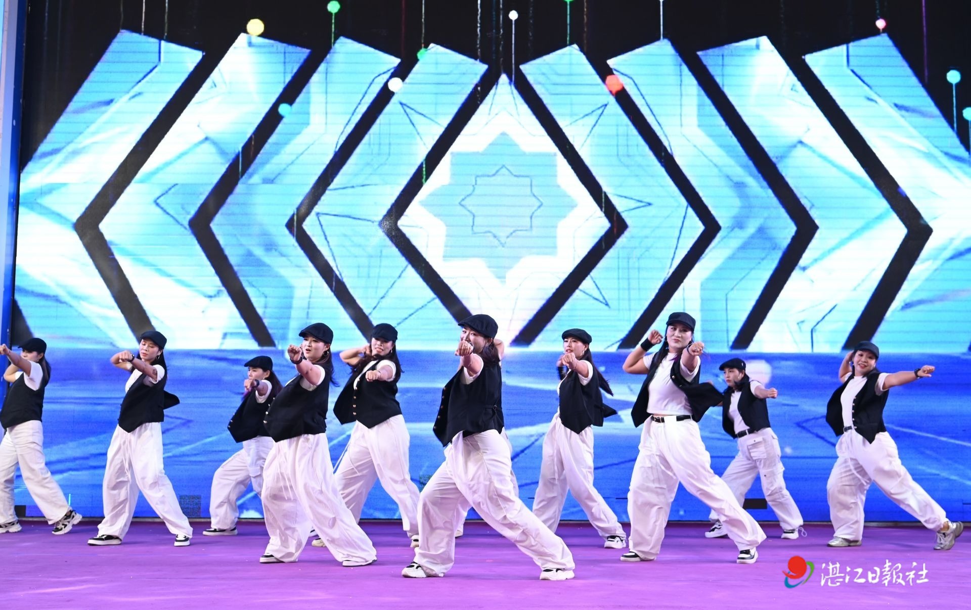 当晚19:30,展演正式拉开帷幕。从观海社区巾帼艺术团妇女联合会带来的《我们的生活充满阳光》,到霞山区广场舞协会艺术团呈现的原创舞蹈《英雄赞歌》,20个节目涵盖民族舞、现代舞、健身操、模特走秀等多种艺术形式。其中,本土音乐原创舞蹈《菠萝飘香迎客来》融入湛江特色元素,朝鲜族舞蹈《金达莱绽芳华》、藏族舞蹈《山情歌》等民族舞蹈展现多元文化魅力,男声独唱《祝酒歌》更是为展演增添别样风采。