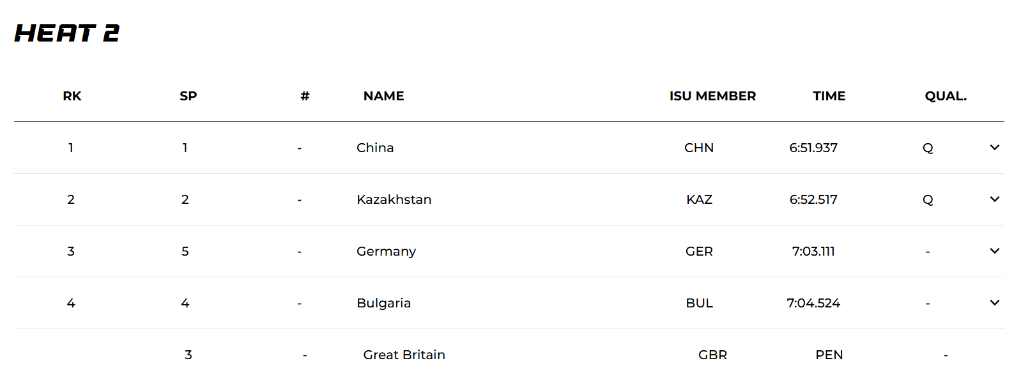 这是男子5000米接力四分之一决赛第二组的成绩截图