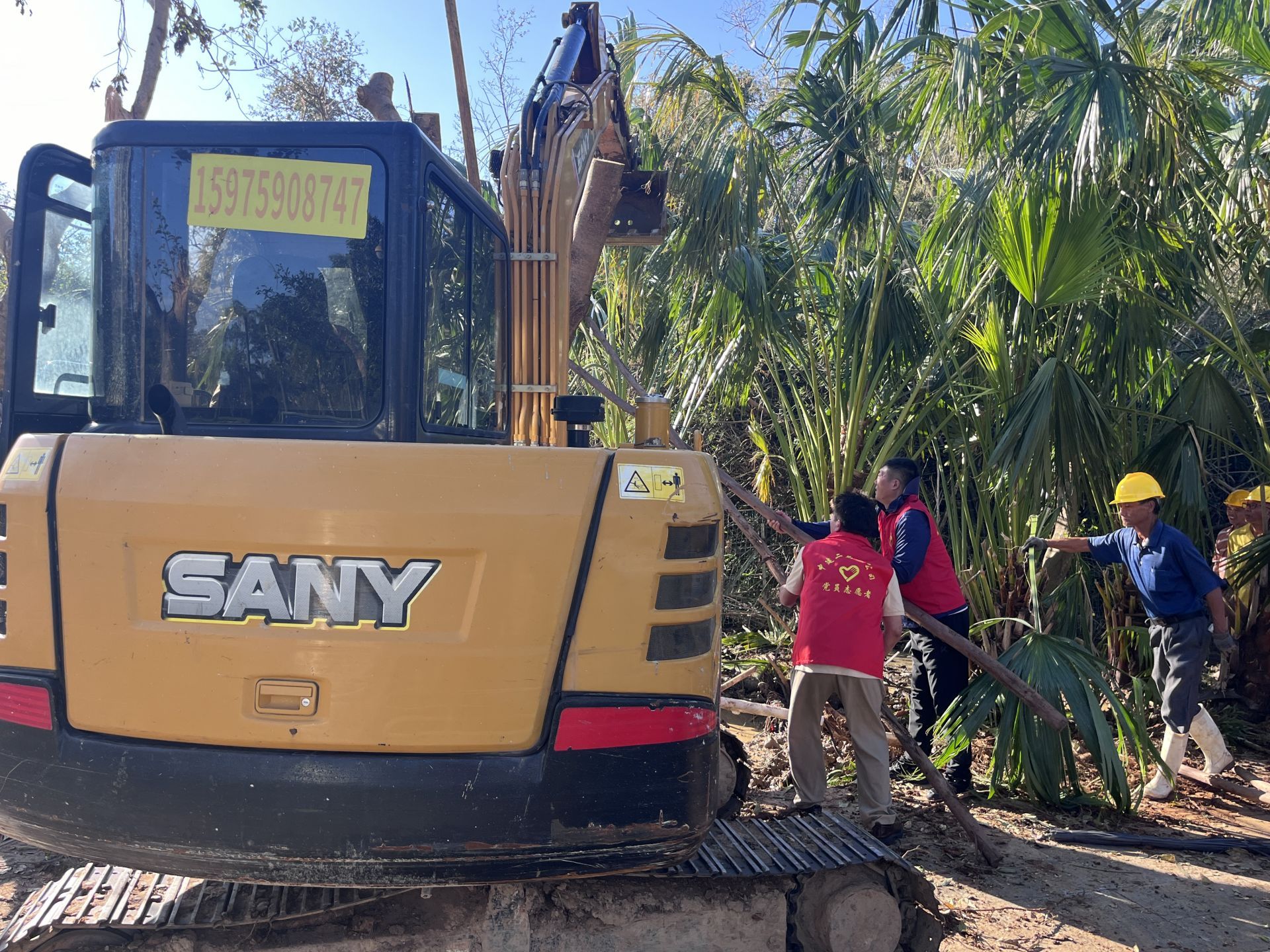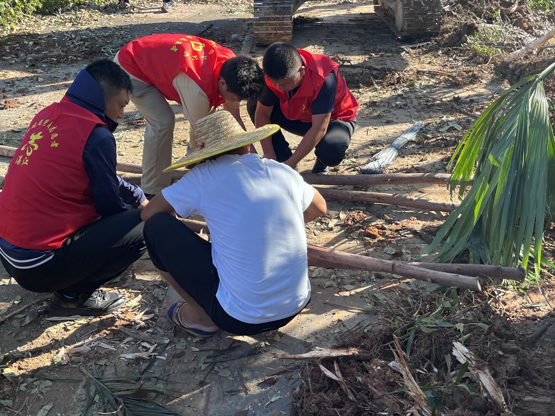 在椹川大道、海滨公园等重点区域,志愿队伍采取“双线作业”模式高效推进,青年党员冲锋在前,连续奋战近12小时。一方面,优先清理路面断枝倒树,迅速打通交通要道;另一方面,对公园绿地内倒伏的树木,则实施梳理根系、调整姿态、三角支撑、及时浇灌等科学养护措施,精心扶正复壮,最大程度保障其存活。