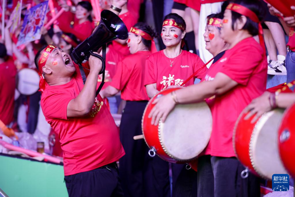 10月12日,浙江诸暨队的拉拉队在比赛中给球员加油。