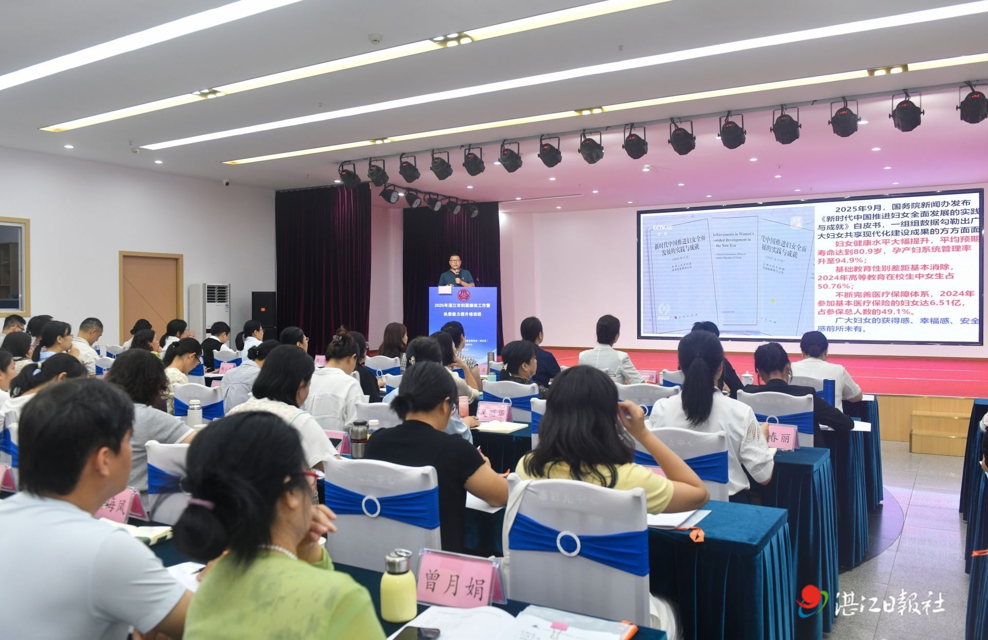 为进一步提升妇联执委、基层维权骨干及服务站点人员业务工作能力与履职水平,推动妇女维权工作高质量发展,10月14日上午,由市妇联主办的2025年湛江市妇联维权工作暨执委能力提升培训班在市妇女儿童活动中心正式开班。市妇联党组书记、主席路静出席并作开班动员讲话,市妇联领导及各部室负责人、非妇联干部的市妇联十一届执委、各县(市、区)妇联主席、权益工作负责人及各服务站点工作人员等80余人参加培训。