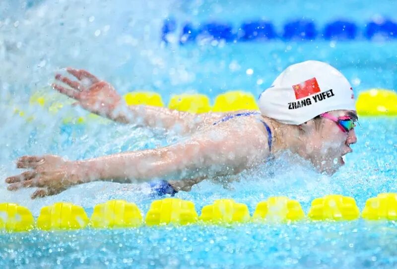 今年5月,在广东深圳举行的2025年全国游泳冠军赛女子50米蝶泳半决赛中,江苏洲克队选手张雨霏晋级决赛。新华社记者 夏一方 摄