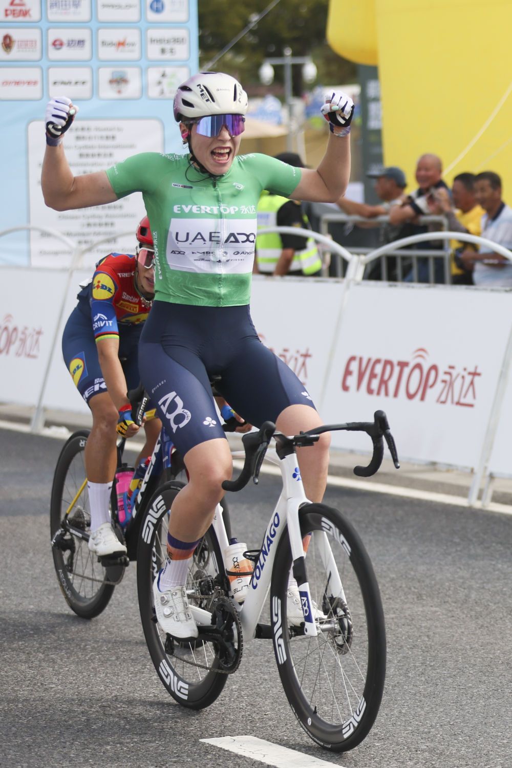 索菲赛后表示:“今天的比赛条件非常棒,天气很好,赛道也很平坦,非常适合冲刺手发挥。但更重要的是崇明的风景太迷人了,而且沿途有这么多热情的观众,他们的欢呼声给了我巨大的能量。”