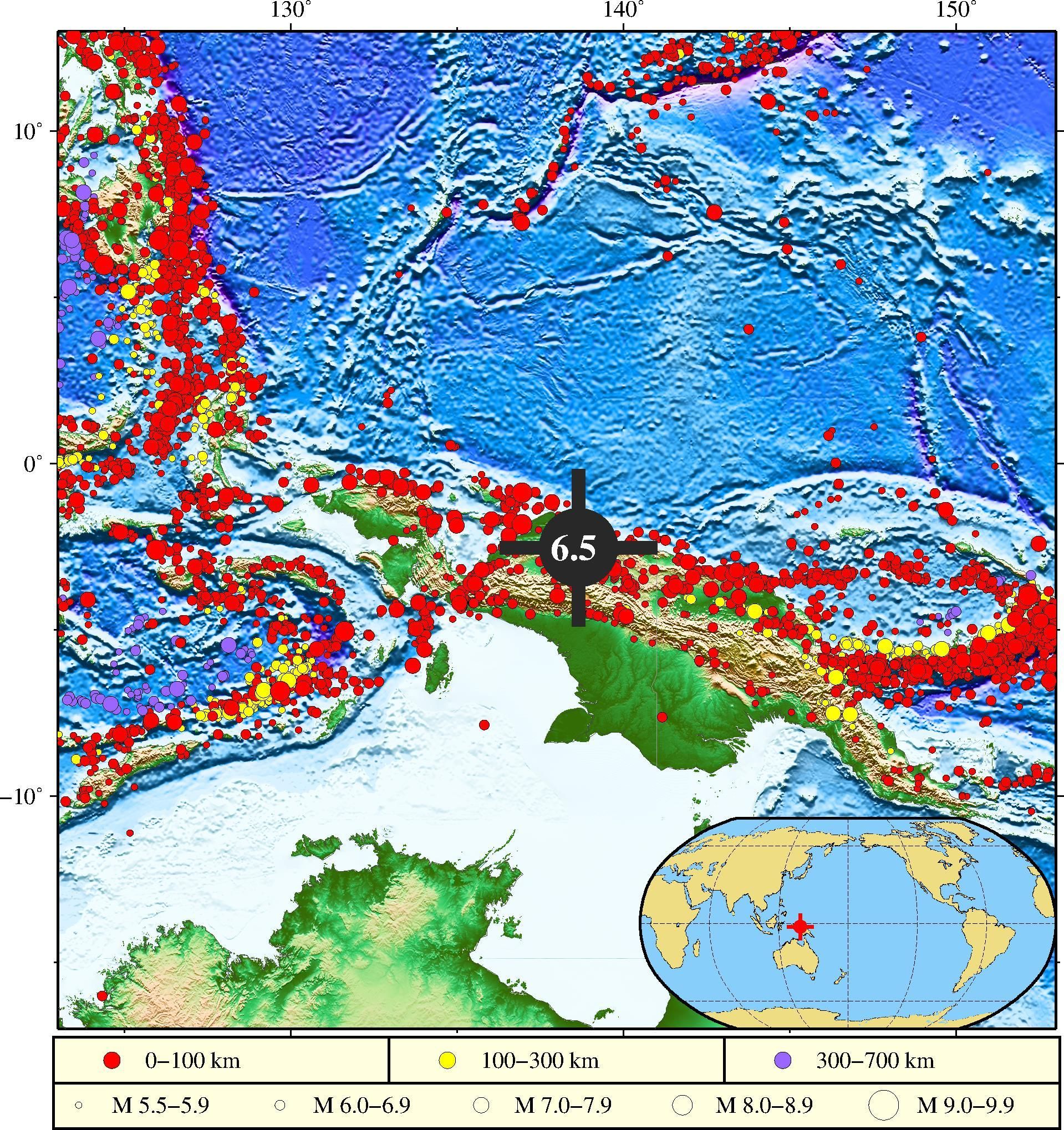 中国地震台网正式测定:10月16日13时48分,在印尼巴布亚省(南纬2.05度,东经138.85度)发生6.5级地震,震源深度10千米。