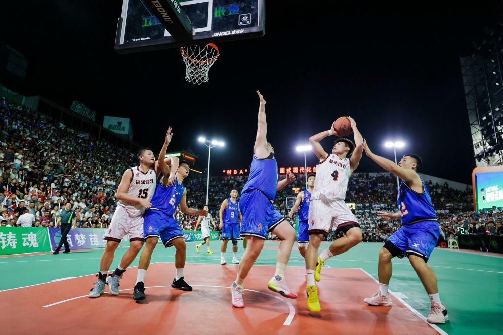 当天晚上8点,冠亚军决赛在台盘村村BA球场打响。第一节比赛,晋江队打出一波10:4的小高潮率先取得领先,咸丰队随后还以一波6:0抹平分差。随后,两队各有攻防,以24:24的比分结束首节争夺。第二节比赛中段,晋江队打出一波9:0,取得11分的领先。咸丰队则在刘韦江的带领下顽强追分,但晋江队表现更加出色,以59:52领先7分进入中场休息。