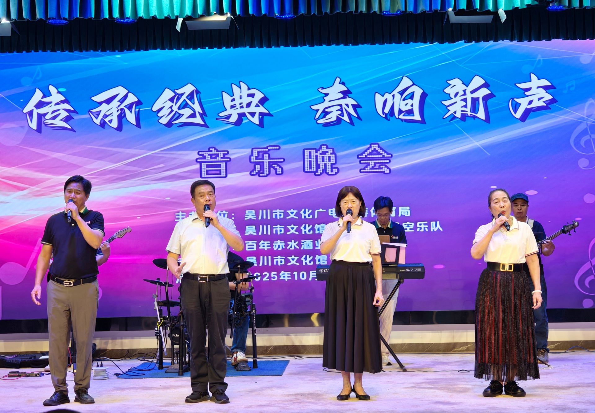 10月17日晚,由吴川市文化广电旅游体育局主办,吴川市文化馆、吴川市星空乐队承办的“传承经典 奏响新声”音乐晚会在吴川市文化馆演艺大厅温情唱响。