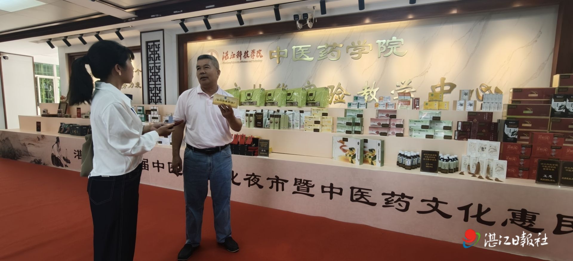 “今天现场展出了学校二十多个专家团队与企业共同研发的300多种中医药健康产品,希望通过这样的活动,让更多人感受中医药的现代价值。”湛江科技学院中医药学院首席专家叶盛权教授介绍道。现场,叶盛权教授团队的海大香人参茶、艾心茶等,吴铁、戚怡教授团队的中药精油等健康产品备受关注,这些畅销市场的产品当天免费向市民开放试用,让大家直观感受中医药在现代健康领域的创新应用。