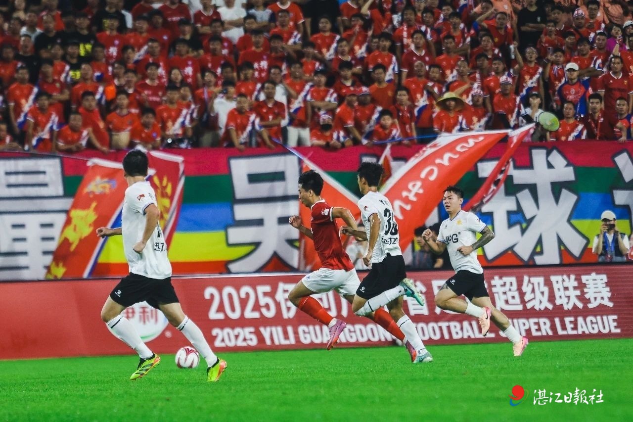 2025年8月23日,2025广东省足球超级联赛正赛在新落成的广州南沙大湾区文化体育中心体育场举行开幕式。揭幕战中,在现场26800名球迷的见证下,吴川青年足球队以3:0战胜主场作战的南沙湾区青年队,取得开门红。战斗力、凝聚力、吸引力越来越强的吴川青年足球队开启“流量密码”,成为省超的流量担当,被冠以广东网红球队美名,获得大量湛江乃至外地球迷的青睐和追随。不管比赛场地在哪,球迷们都热情奔赴,气氛引爆全场。