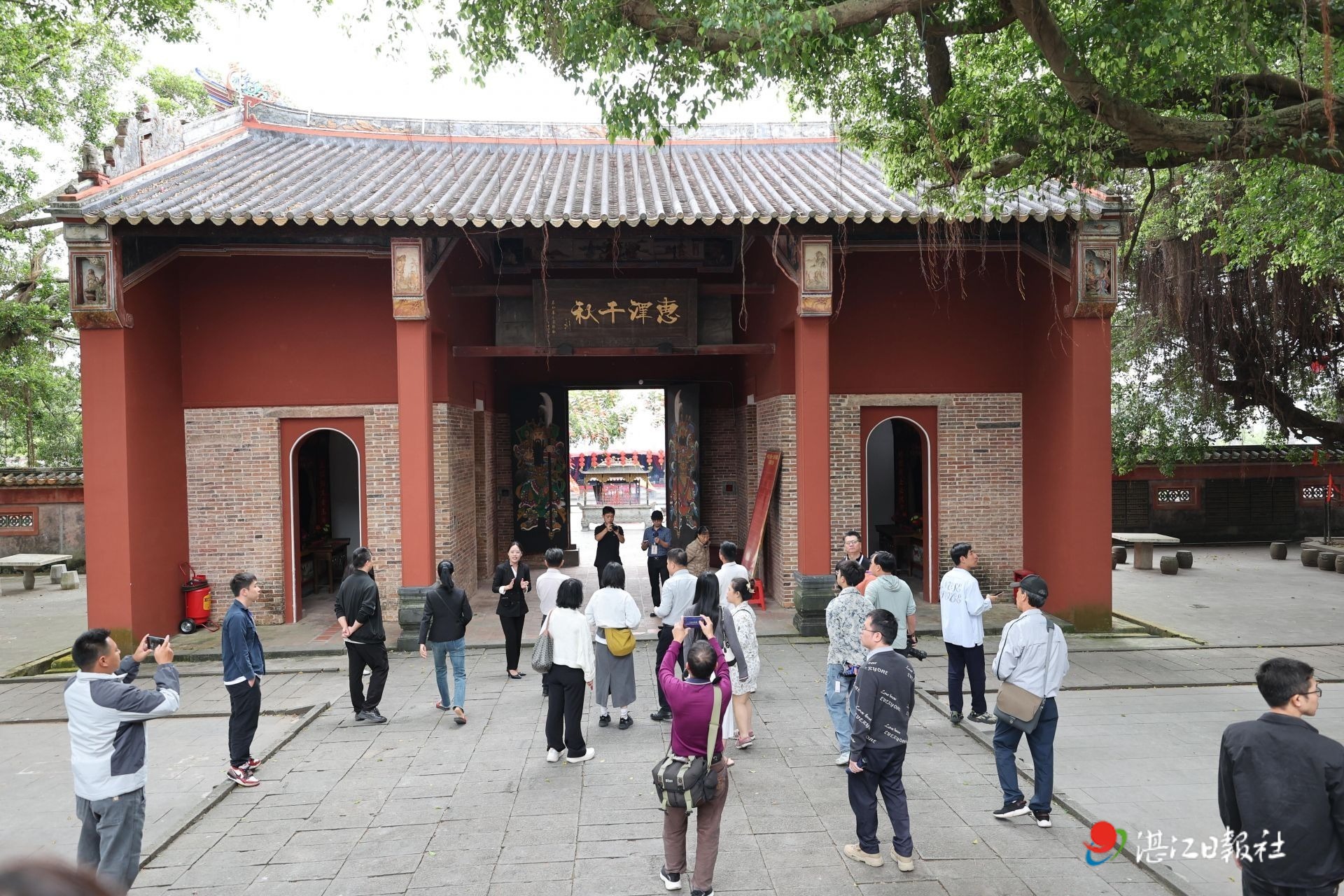 当天的雷祖祠之旅,远看依山而建的建筑群,近观错落有致、气势恢宏的正殿、后殿、钟鼓楼等,记者们无不为这座素有“岭南第一祠”之美誉的古祠所称奇,纷纷认为这是雷州半岛最具代表性的古建筑之一。听到导游说起雷祖祠的兴建与雷祖陈文玉密切相关,记者们都更加专注探寻其传说:相传,雷州首任刺史陈文玉勤政爱民、造福一方,深受百姓爱戴。为了纪念这位为民造福的“雷祖”,当地百姓便修建了雷祖祠。