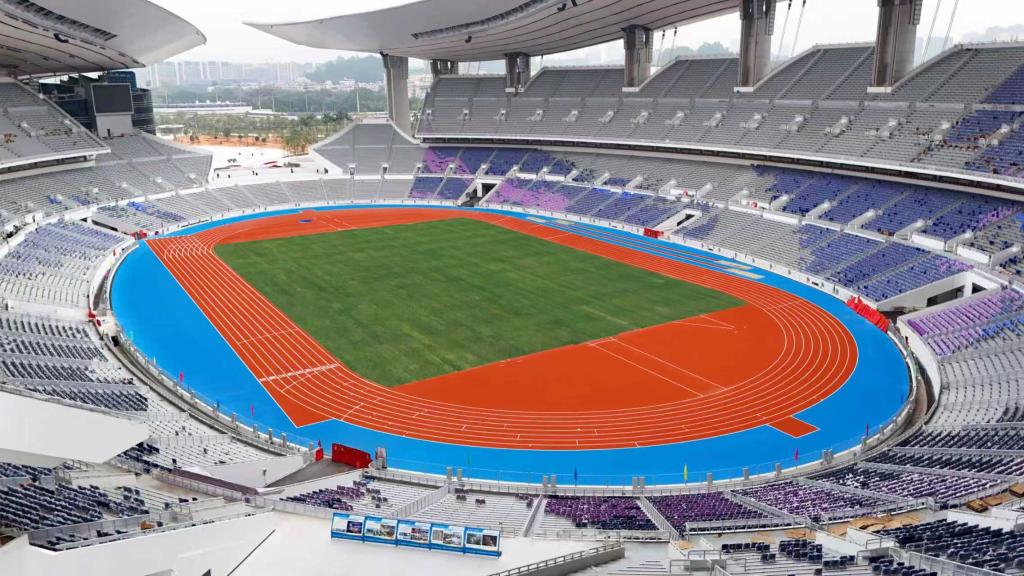 广东奥体的田径跑道由本土企业同欣体育制造,通过最高级别的世界田联一级场地认证,静待全国跑得最快的人一决高下。