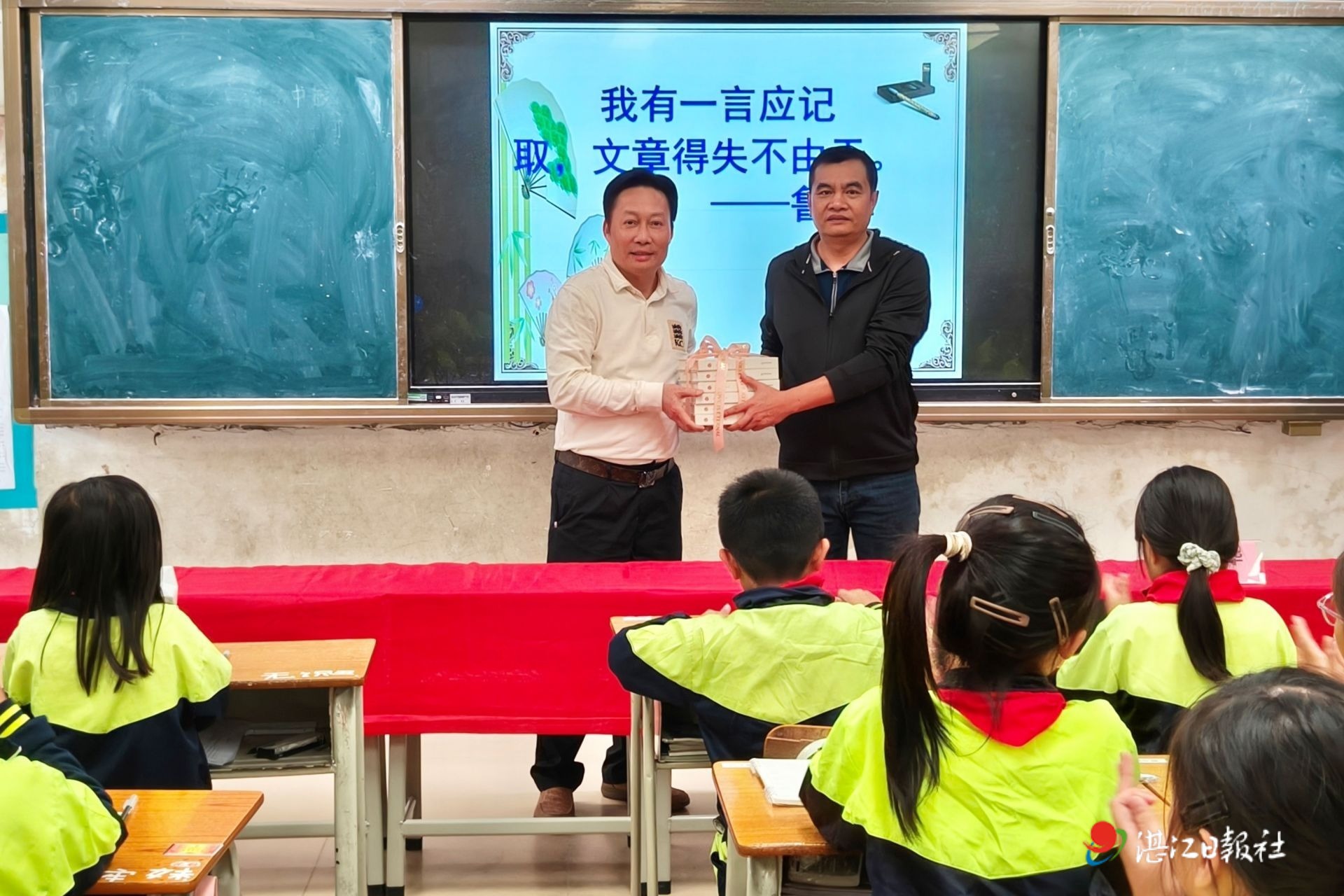 讲座尾声,吴川市政协常委、广东省作协会员、吴川市作协副主席何晨枫向兰溪小学赠送了其个人文学著作《在浮光里行走》,希望通过书籍为同学们打开更广阔的文学视野,鼓励大家多读书、读好书、勤写作。