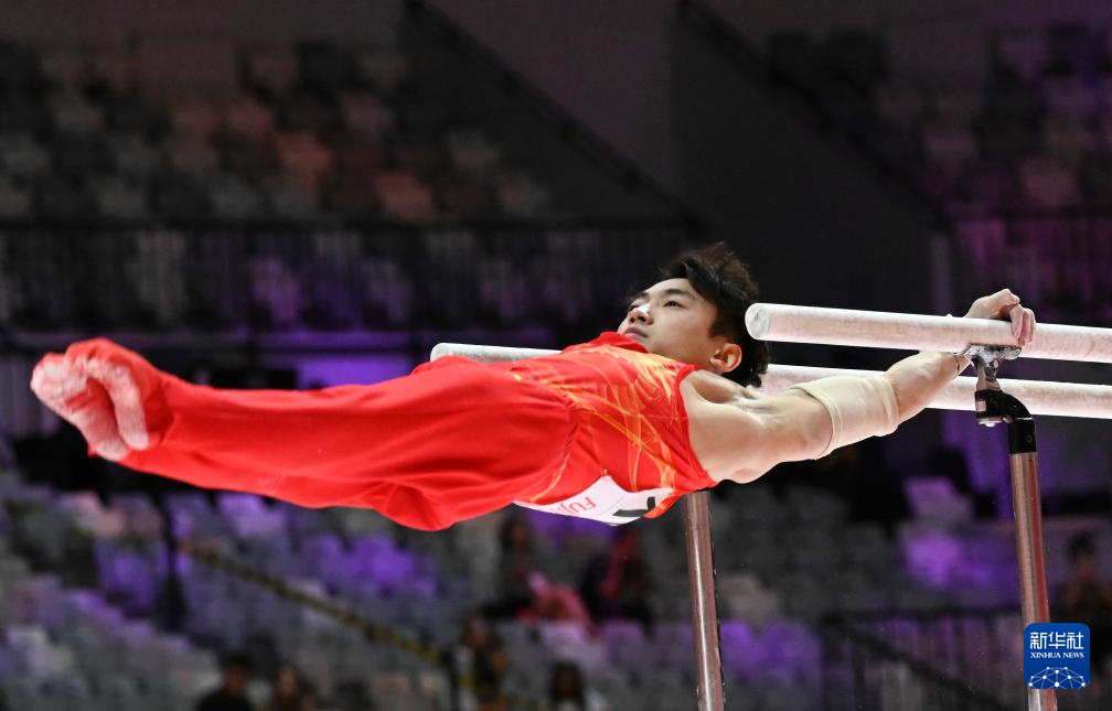 当日,在印度尼西亚雅加达举行的2025年国际体操联合会(FIG)竞技体操世锦赛男子双杠决赛中,中国选手邹敬园夺得冠军。