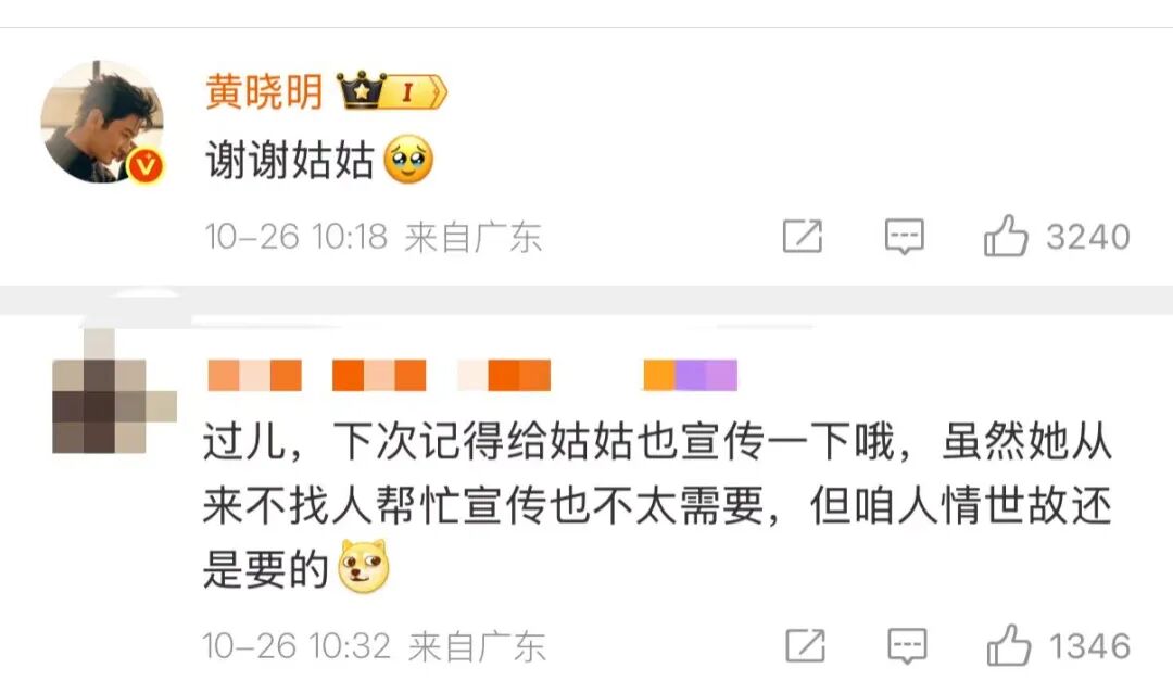 有趣的是,有刘亦菲的粉丝给黄晓明留言,请他在刘亦菲有新作问世时,也来帮忙打个call,“过儿,下次记得给姑姑也宣传一下哦,虽然她从来不找人帮忙宣传也不太需要,但咱人情世故还是要的。”