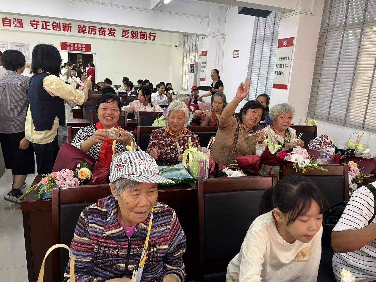 “礼敬芳华”环节将温情推向高潮。20位长者分批上台,区志愿服务联合会会长林永英、区文明办主任李胜春等为他们送上节日礼品,青少年代表则献上鲜花。一个拥抱、一声问候,传递出浓浓的敬老情意。