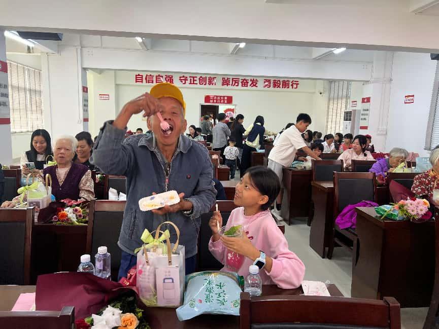 活动尾声,领导、长者、志愿者与孩子们共同切开了写有“九九登高 步步高升 健康长寿 身体健康”的节日蛋糕,并一起品尝暖心饺子,在甜蜜与温暖中定格美好瞬间。