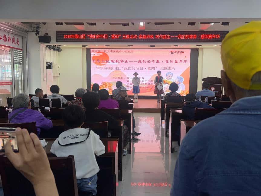 活动伊始,宣讲员生动讲解了重阳节的起源、“桓景战瘟魔”的传说,以及登高、赏菊、品重阳糕等传统习俗,并带领大家齐诵重阳诗词。现场观众在趣味学习中领略了传统文化的魅力。