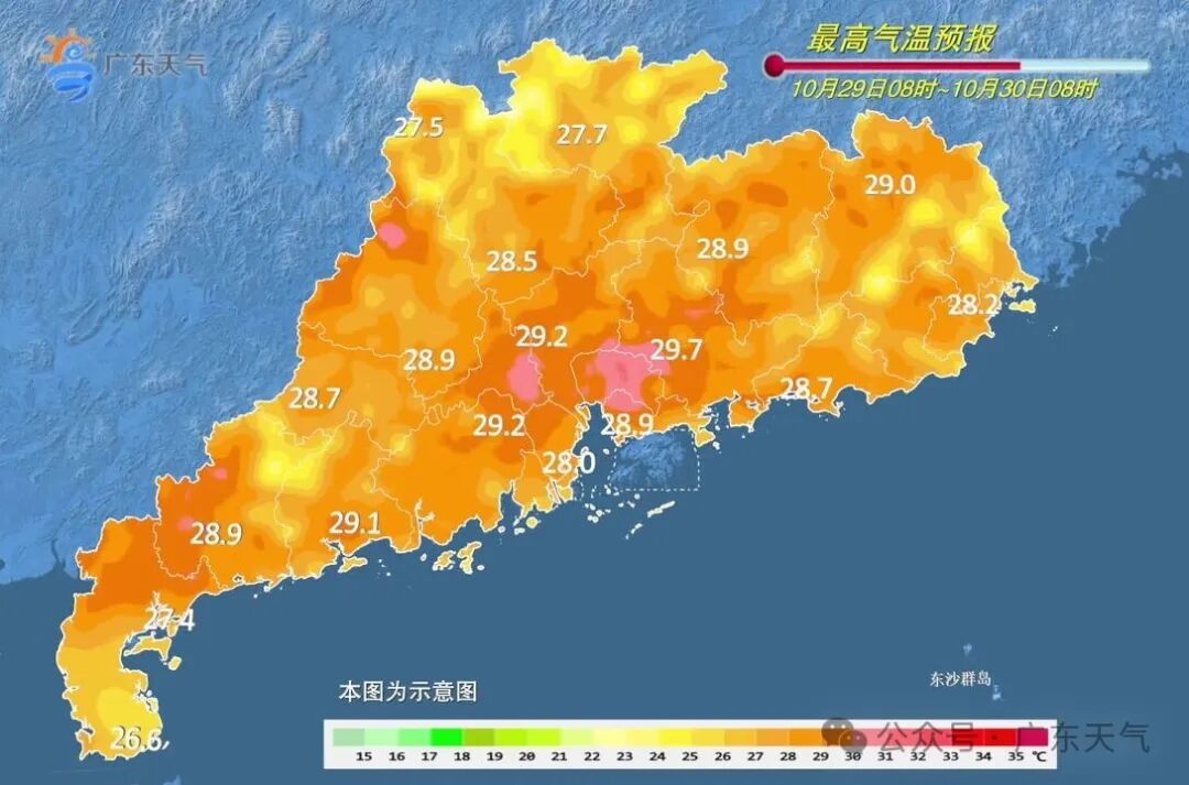 29日,雷州半岛南部多云间阴天,有分散小雨,其余市县多云。最低气温:粤北市县18~20℃,南部沿海市县22~24℃,其余市县20~22℃。
