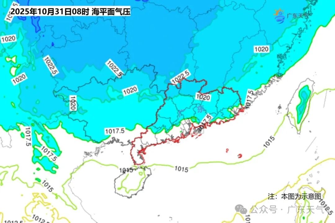 展望31日起,新一股弱冷空气再次补充影响广东,本周末气温下降,并伴有弱降水。