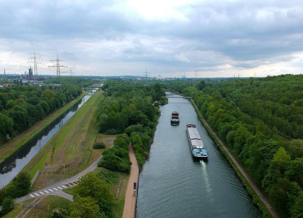 2019年5月10日,货船航行在德国埃森埃姆舍河上。新华社记者逯阳摄