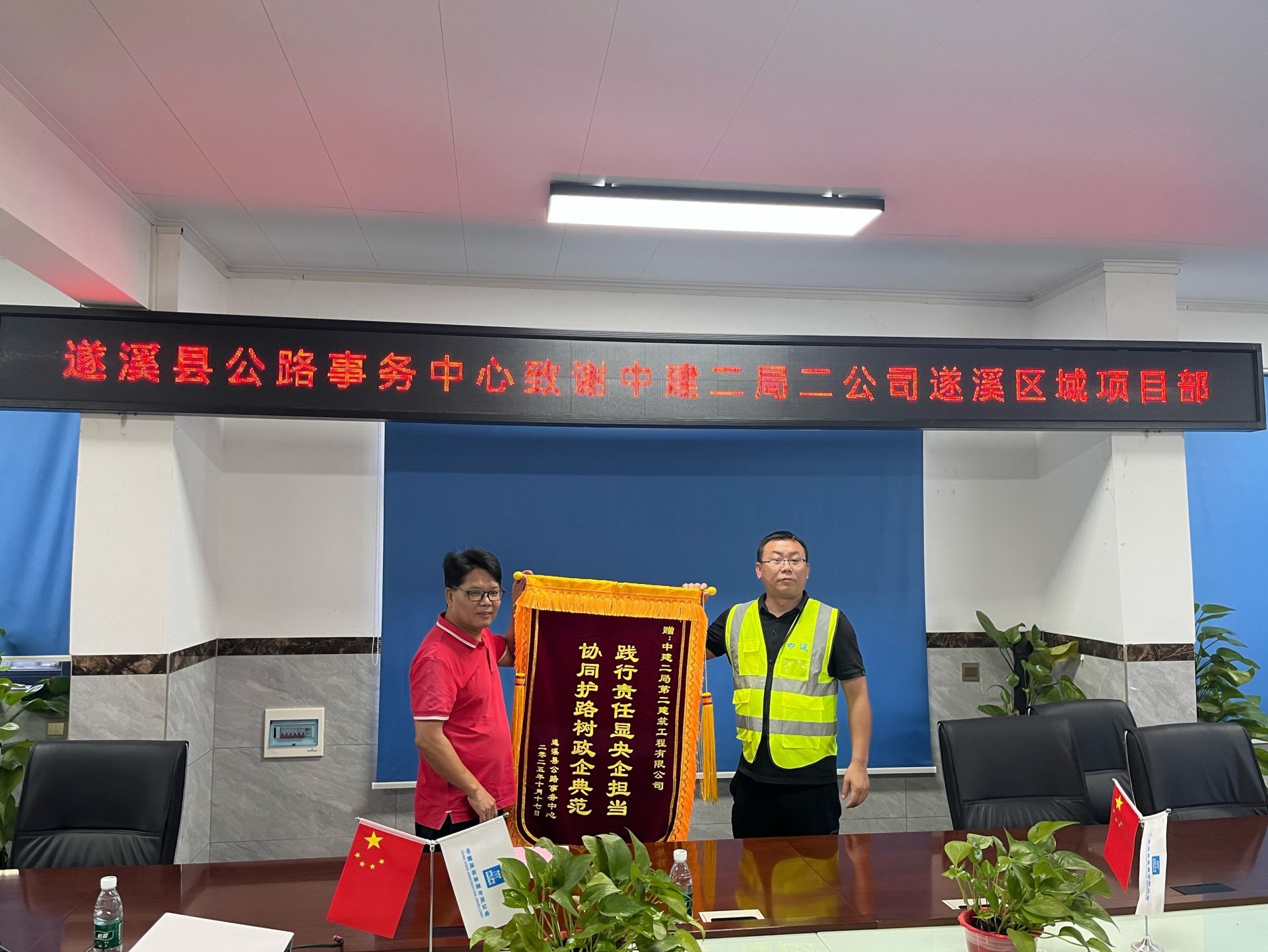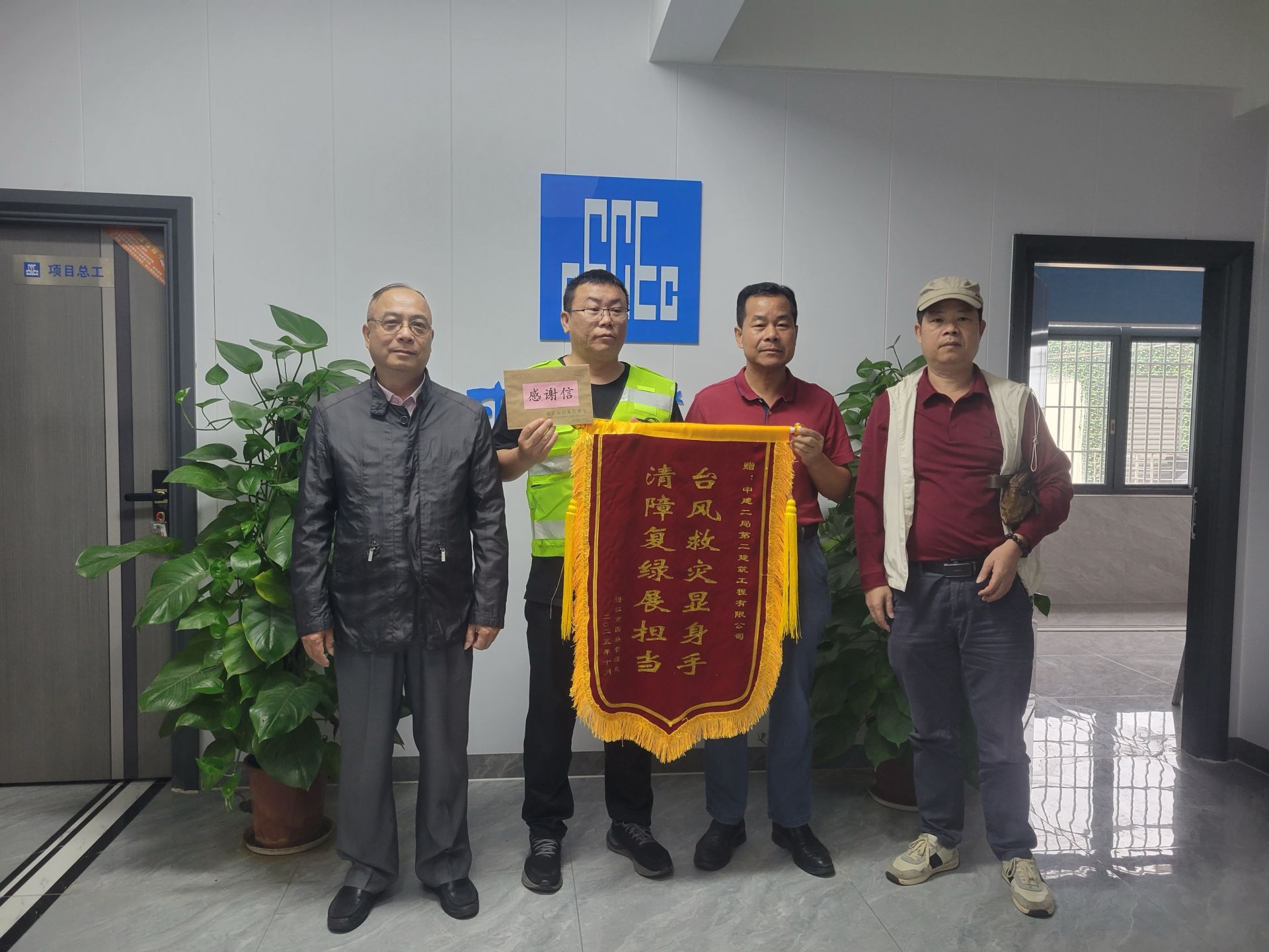 近日,中建二局遂溪区域项目部接连收到两份“感谢礼”——遂溪县公路事务中心与湛江市园林管理处先后到访,分别送上“践行责任显央企担当 协同护路树政企典范”“台风救灾显身手 清障复绿展担当”的锦旗及感谢信,以双重肯定点赞央企在救灾复产中的硬核担当。