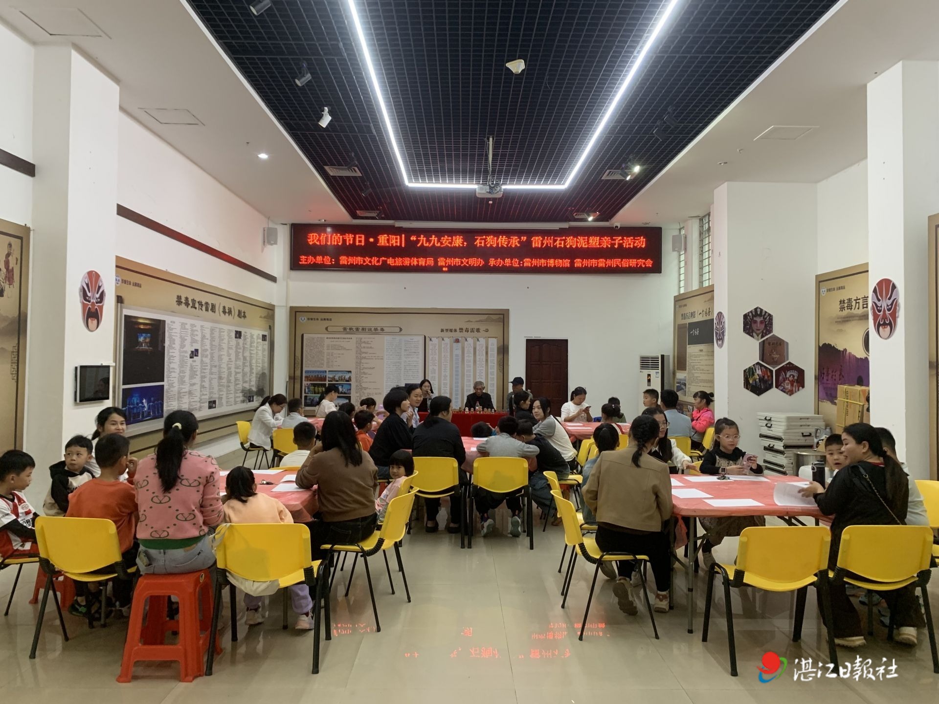 10月26日,由雷州市文广旅体局、雷州市文明办联合雷州市博物馆、雷州市雷州民俗研究会策划的“九九安康,石狗传承”——雷州石狗泥塑亲子活动举行。当天,20组亲子家庭齐聚于雷州市博物馆一楼社教室,在动手实践中解锁重阳习俗。