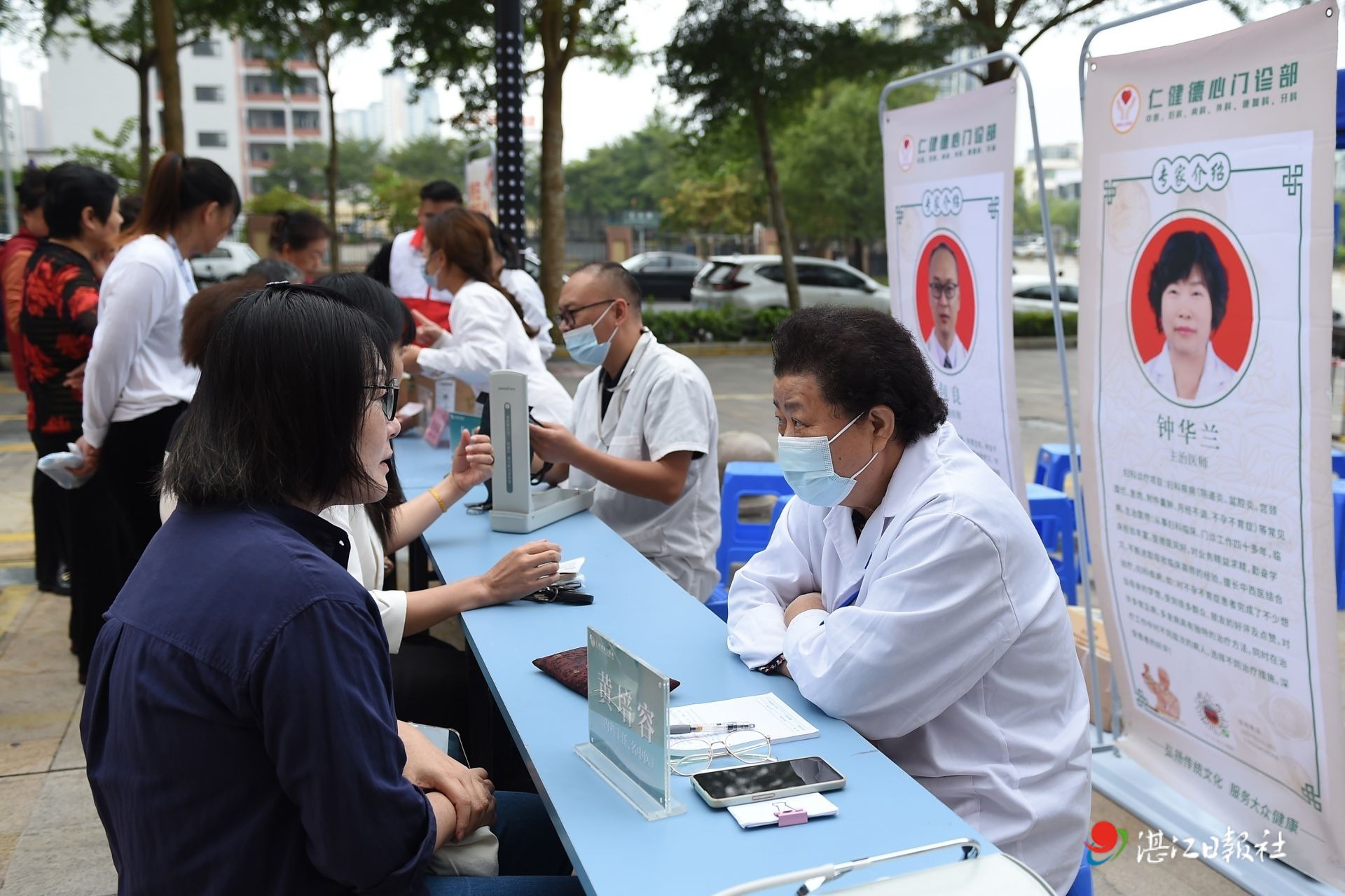 在“情暖重阳 书画传情”活动现场,湛江市老年书画摄影家协会30多位书画家现场挥毫创作,笔走龙蛇间,“福寿康宁”“松鹤延年”等寓意吉祥的书法作品渐次成型,水墨丹青勾勒的菊花、仙鹤跃然纸上。书画家们还根据居民喜好,在扇面上绘制梅兰竹菊、山水小品等,细腻的笔触让普通扇子变成了兼具实用性与艺术性的节日礼物。居民们或驻足观摩创作,或手持作品打卡留念,感受传统文化魅力。
