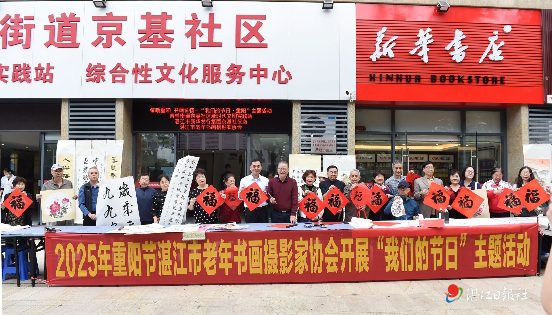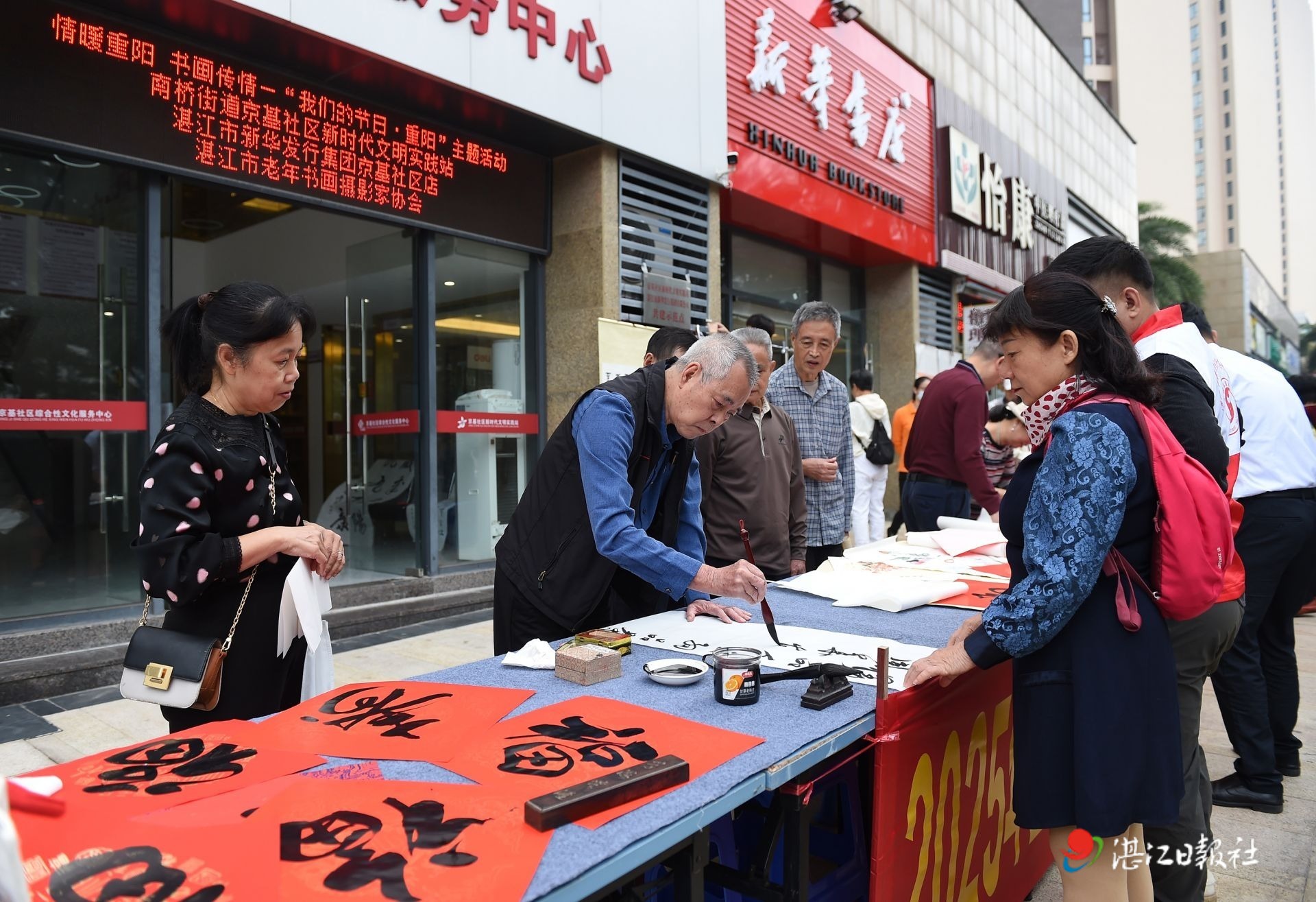 10月29日是重阳节,当天上午,湛江市赤坎区南桥街道京基社区新时代文明实践站联合湛江市新华发行集团京基社区店,同步开展“情暖重阳 书画传情”与“书香养生 健康同行”两场重阳主题活动。辖区居民积极参与,共度传统佳节。