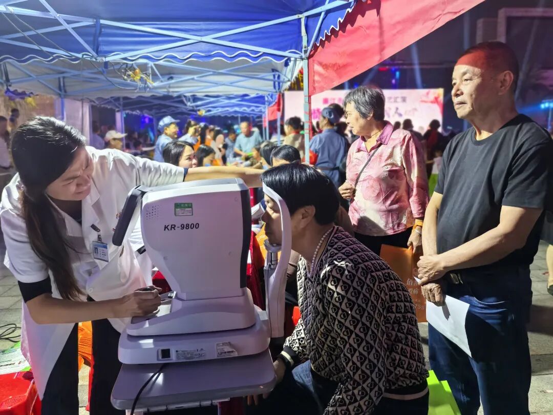 当晚,主办单位联合协办、支持单位在演出现场周边摆摊设点,为老年朋友提供义诊、血压测量、视力检查、听力测试、养老政策咨询等服务,并收集老人意见,为后续扶老助老工作优化做准备。
