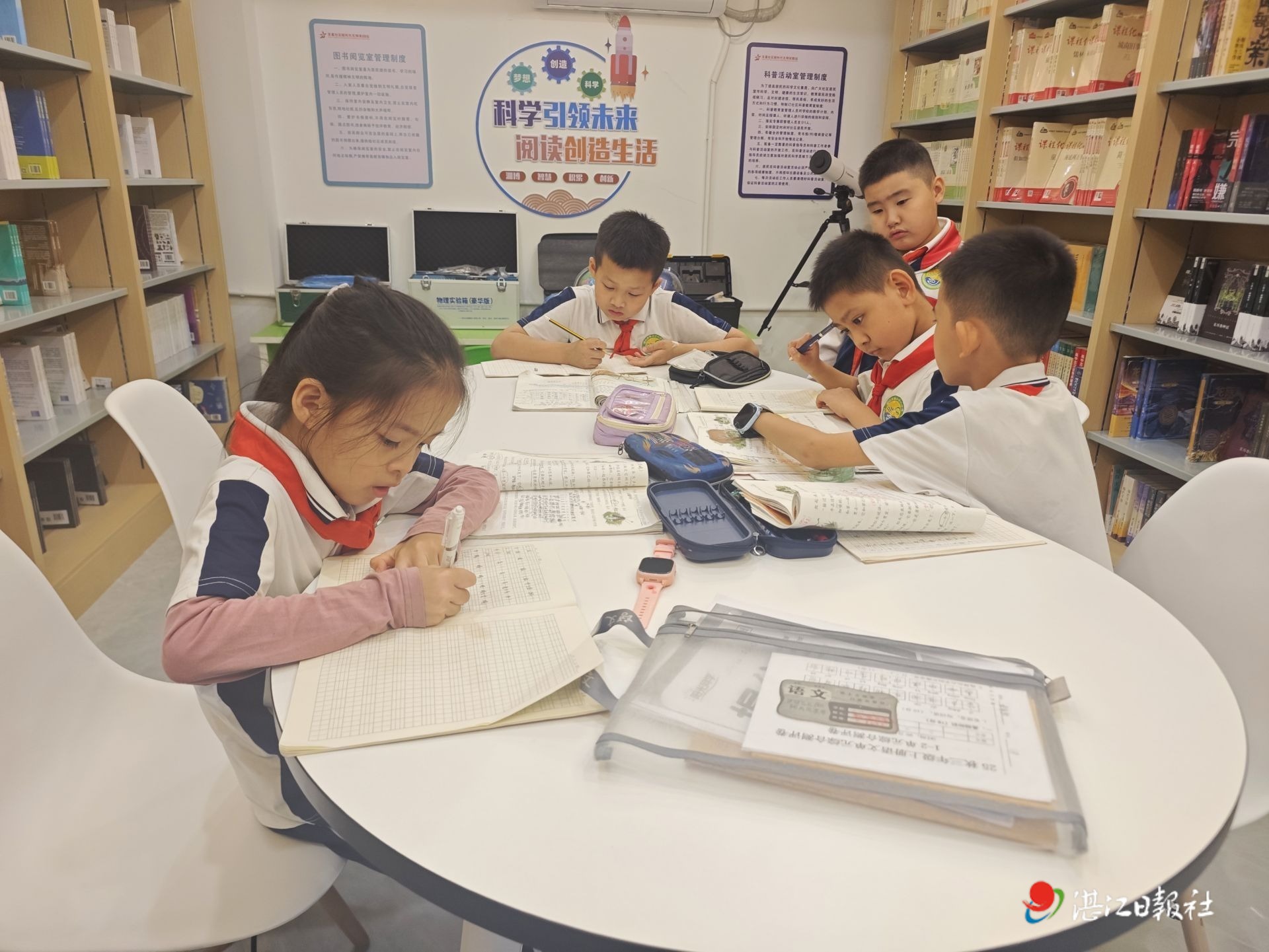每天下午,赤坎区南桥街道京基社区新时代文明实践站里,刚放学的孩子们背着书包走进图书阅览室:有的坐在凳子上翻看绘本,有的围在书桌前认真做题,工作人员则忙着整理新到的儿童读物。这个兼具阅读空间、文创展厅与活动场地的350平方米空间,自10月1日正式运营以来,已成为周边5万居民的“文化充电站”。