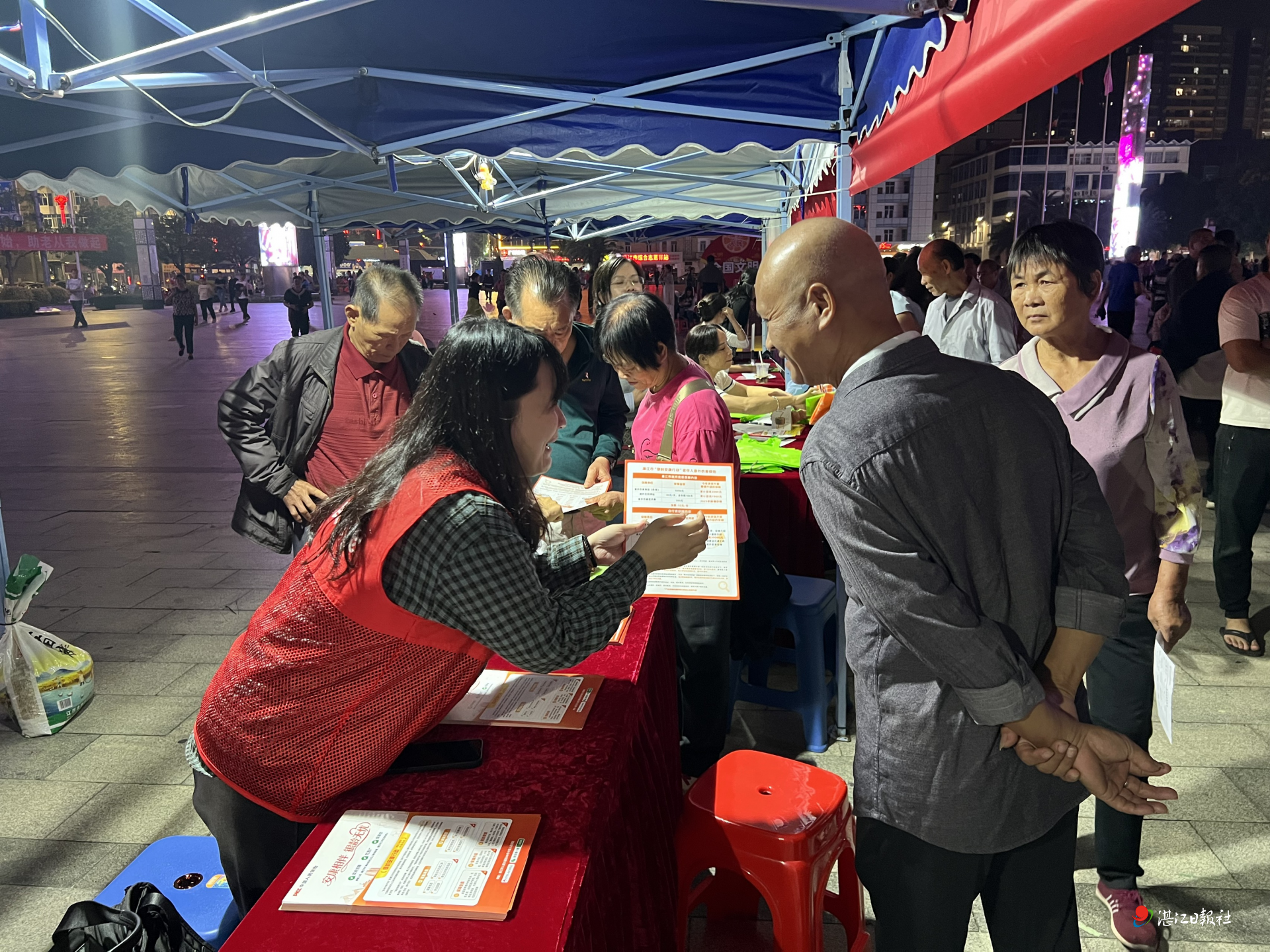 汇演现场灯光璀璨,台下坐满了前来观看的老年人与市民,歌舞、戏曲等精彩节目赢得阵阵掌声。此外,人保财险廉江支公司设立的“银龄安康”咨询服务台成为服务亮点,工作人员耐心解答每一位群众关于保险政策、理赔流程等疑问,累计发放宣传资料300余份,受理咨询近百人次,让惠民政策知晓度在面对面沟通中有效提升。